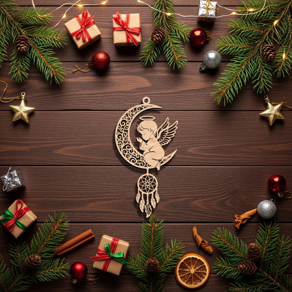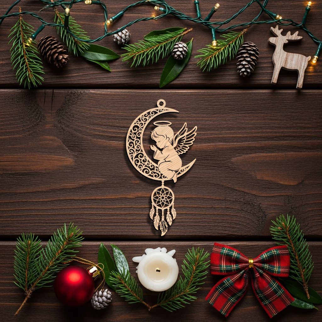 Angel Moon Ornament, Laser Engraved Celestial Christmas Decor for CNC