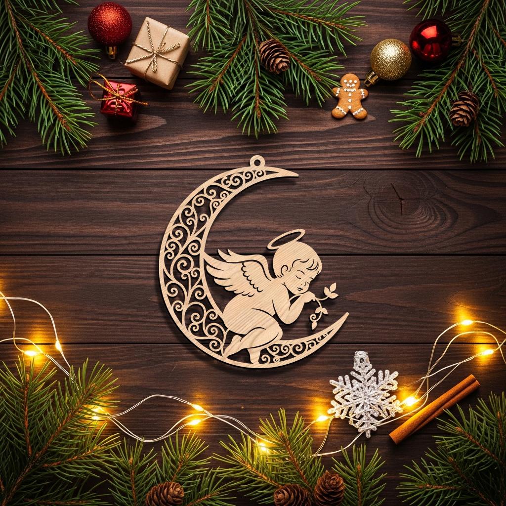 Angel on Moon Ornament File, Christmas Celestial Home Decor Digital Download