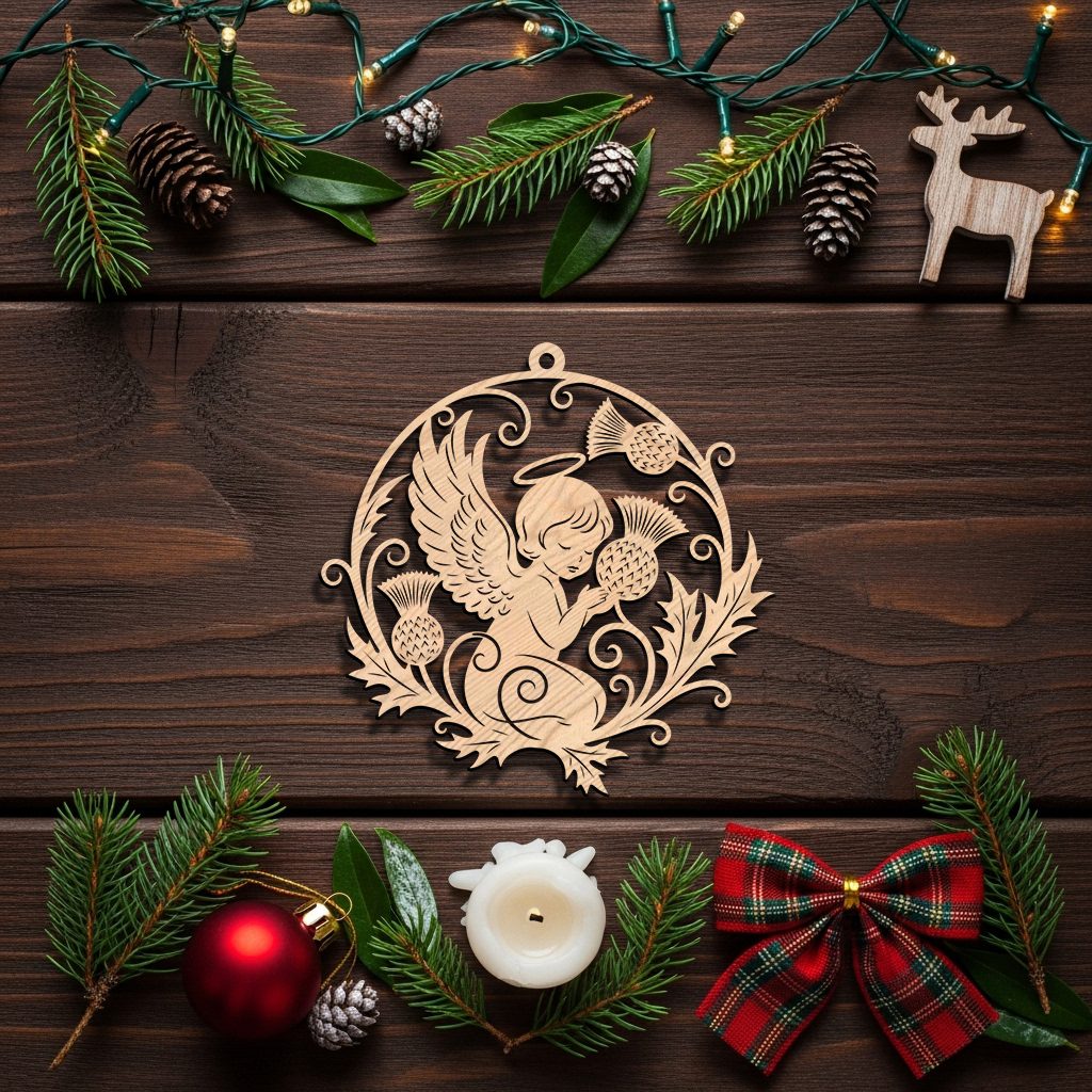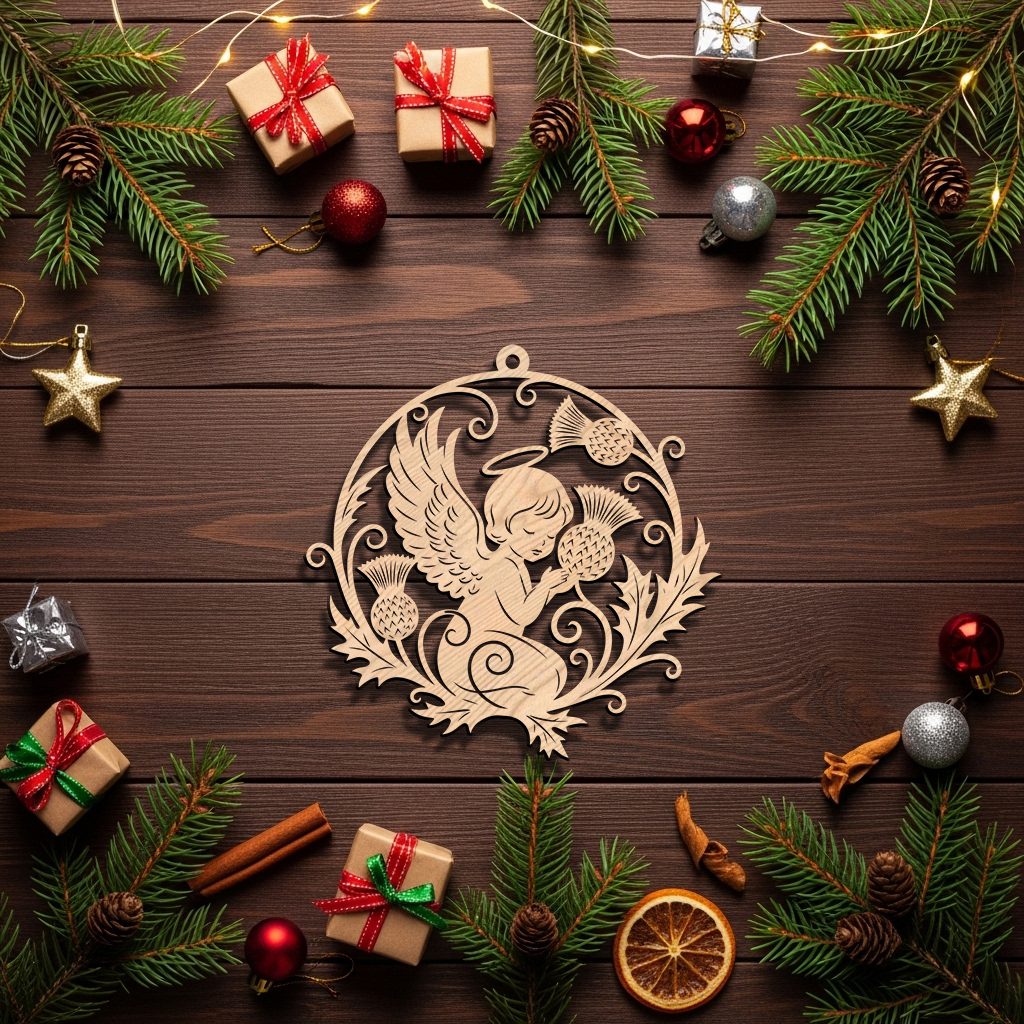 Angel Ornament Christmas Laser File, Angel with Thistles CNC Woodworking Design