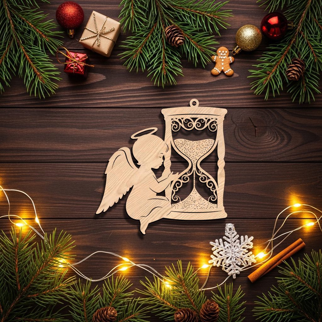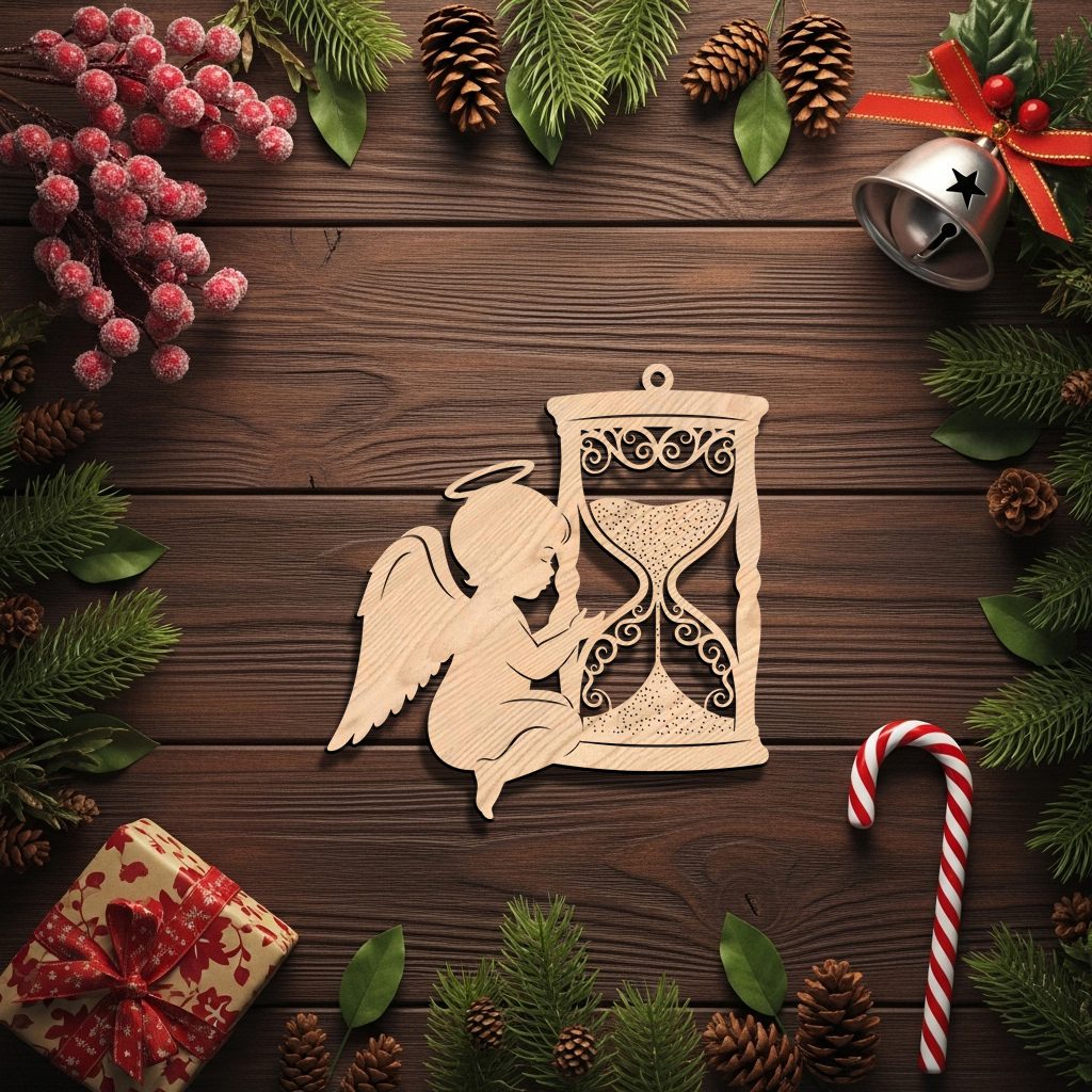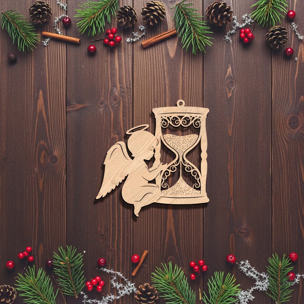 Angel Ornament Christmas Laser File, Hourglass Memorial Design, CNC Vector for Wood