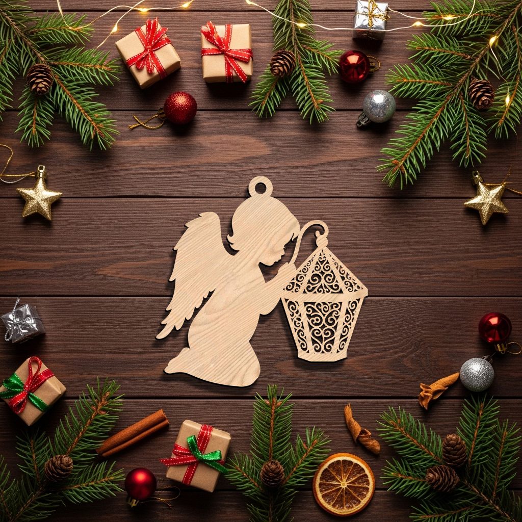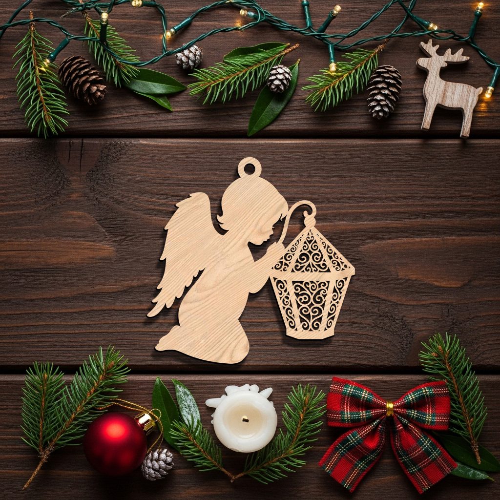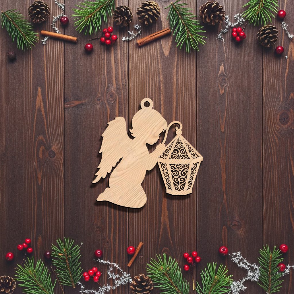 Angel Ornament Christmas Laser File, Lantern Silhouette, Holiday CNC Wood Design