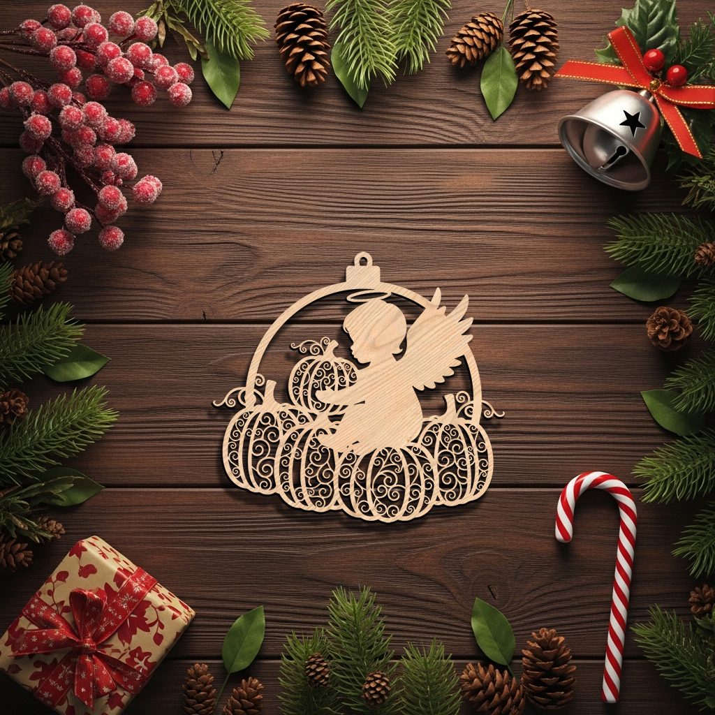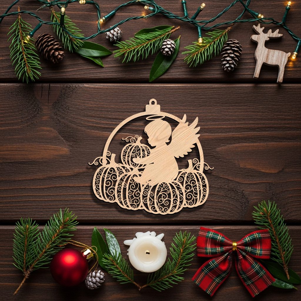 Angel Ornament Christmas Laser File, Pumpkin Silhouette Design for CNC Engraving