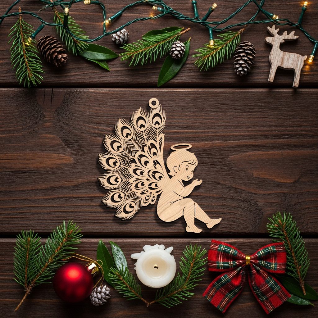 Angel Ornament Digital File, Cherub Silhouette Holiday Decor, Christmas Laser Design