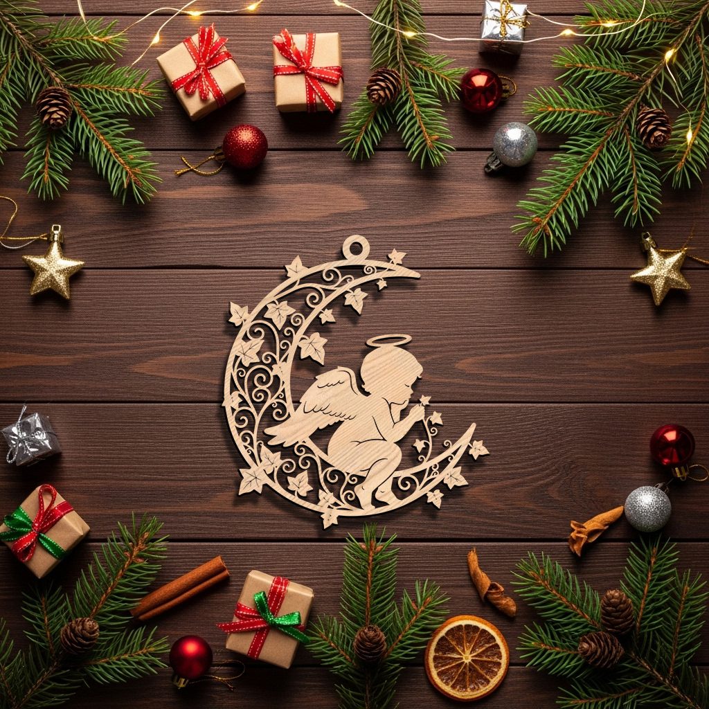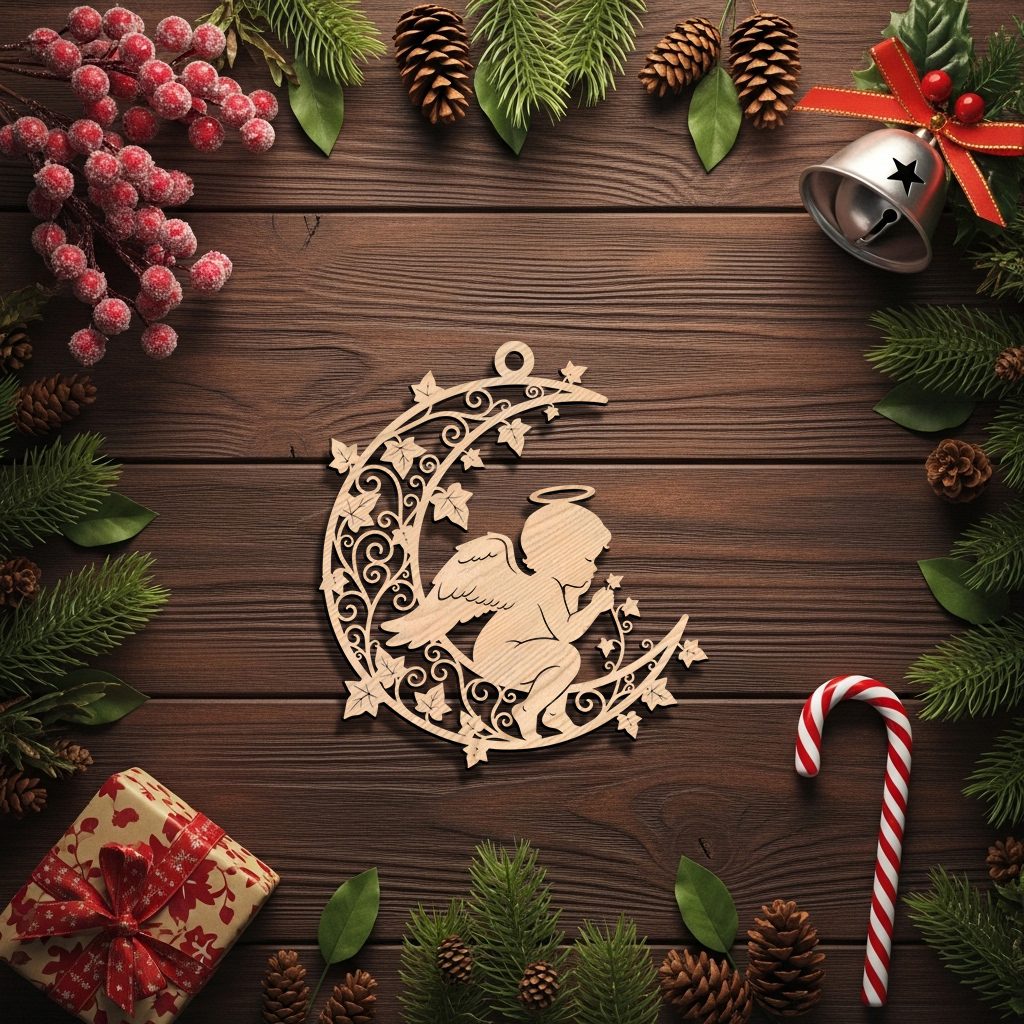 Angel Ornament Laser File, Christmas Angel Moon Design, Digital Holiday Craft Decor