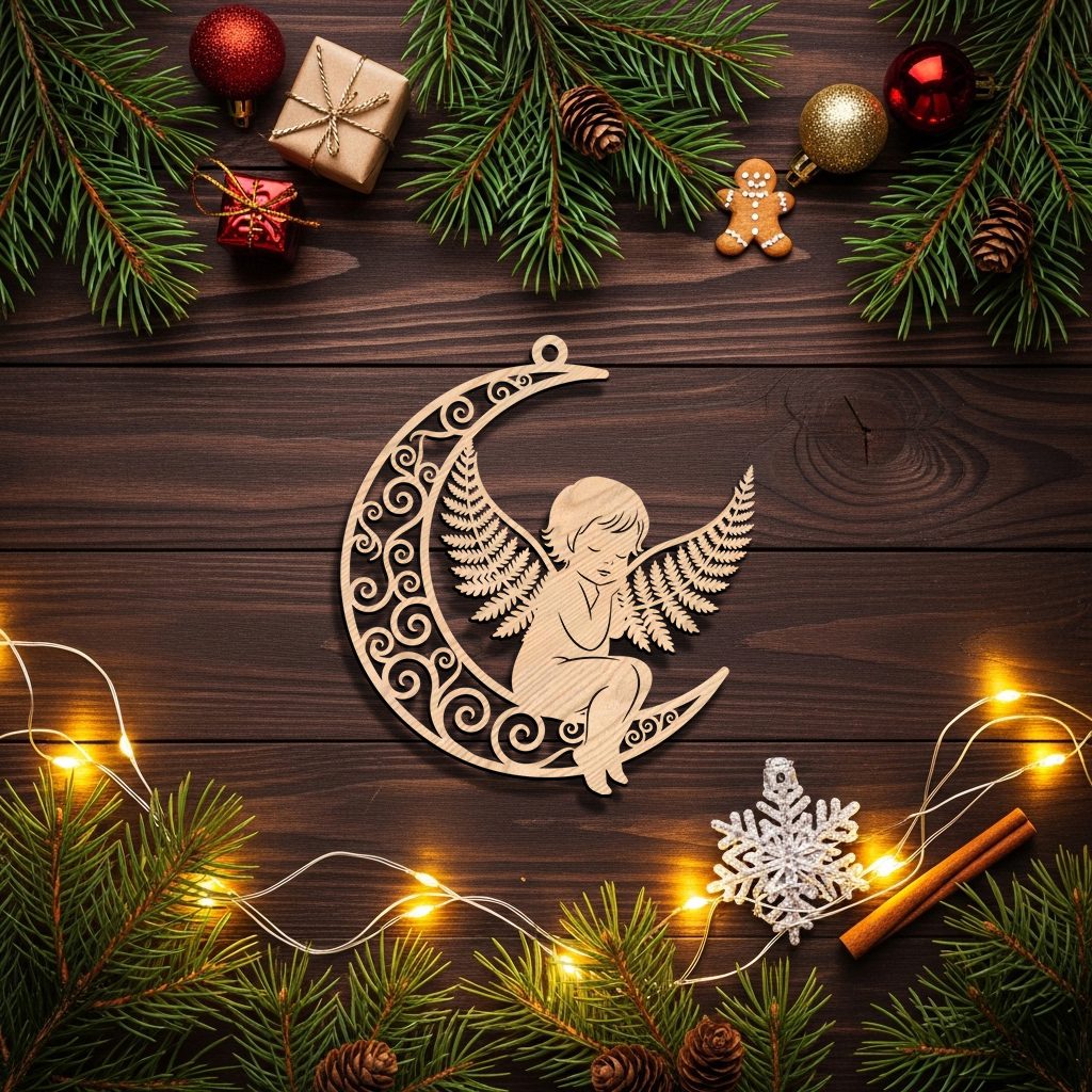 Angel Ornament Laser File, Christmas Celestial Angel Moon Design for CNC Decor
