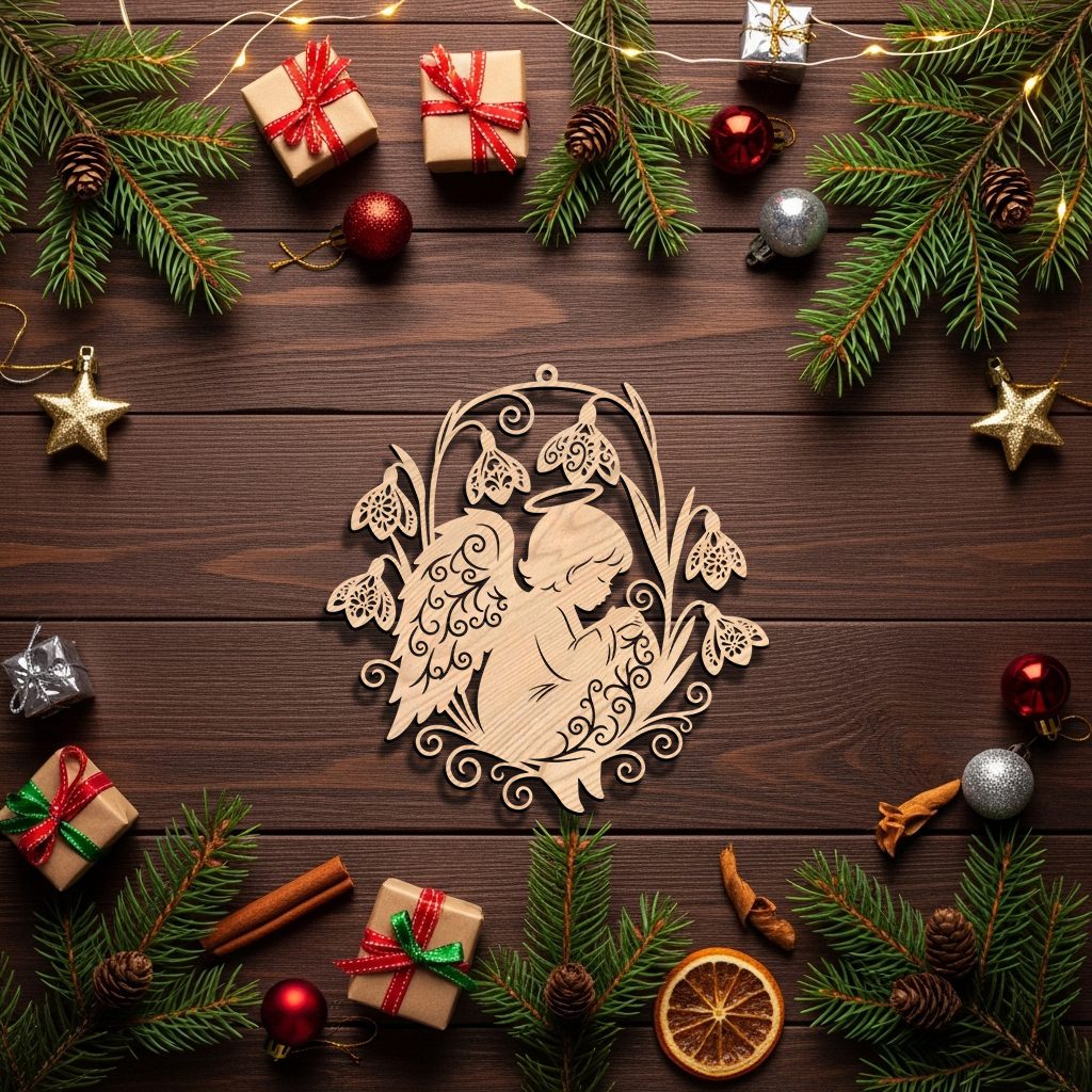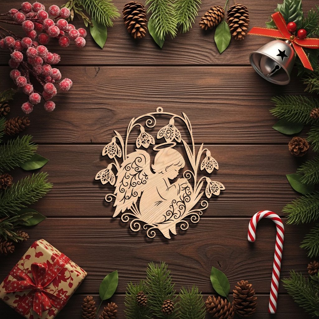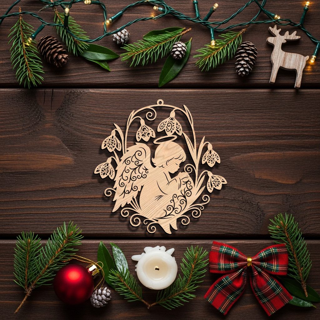 Angel Ornament Laser File, Christmas Floral Angel Silhouette for Holiday Decor