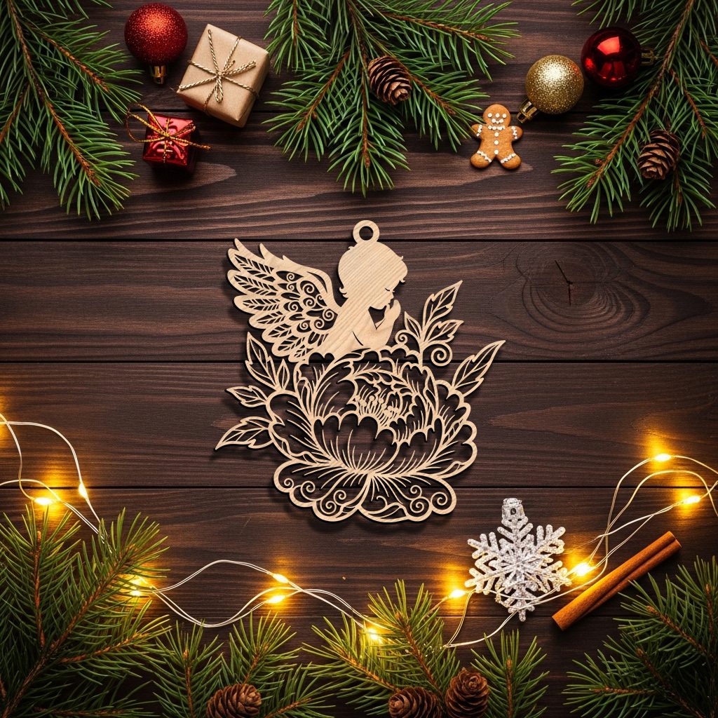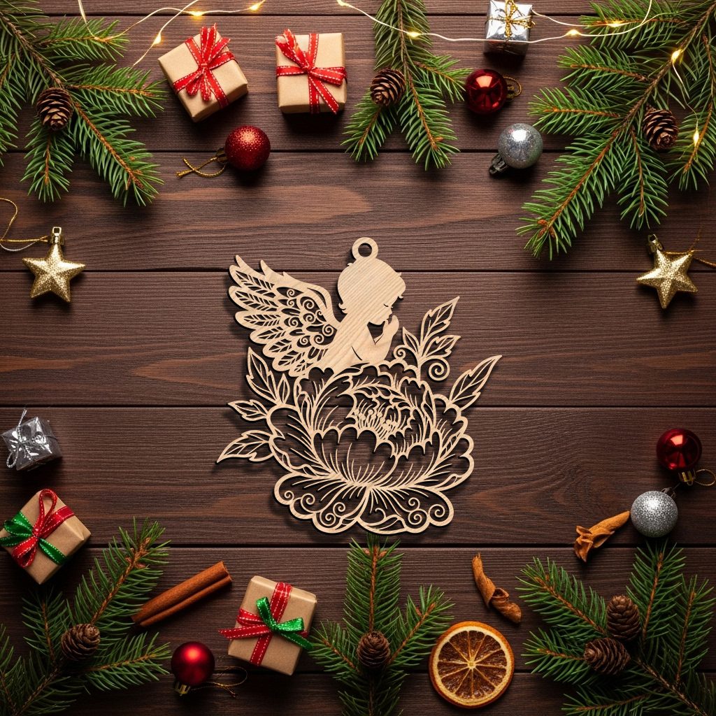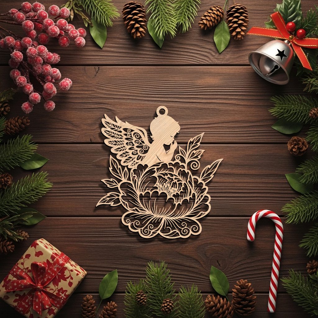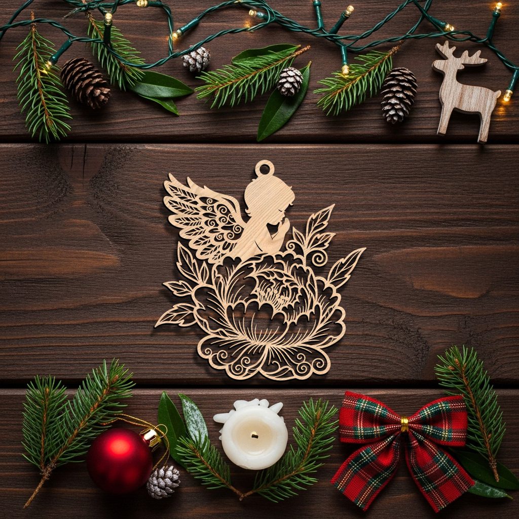 Angel Ornament Laser File, Christmas Flower Silhouette, Religious Decor Design