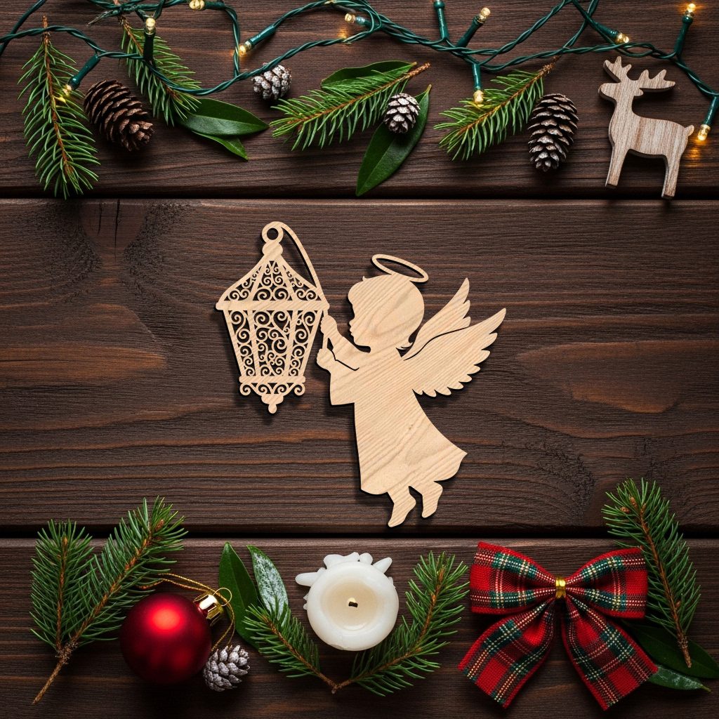 Angel Ornament Laser File, Christmas Lantern Angel Silhouette Design for Decor