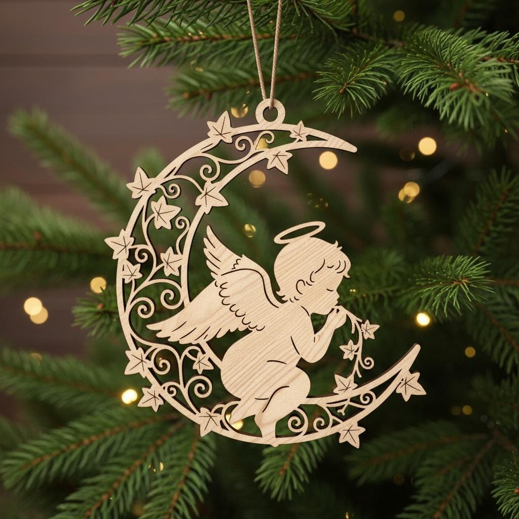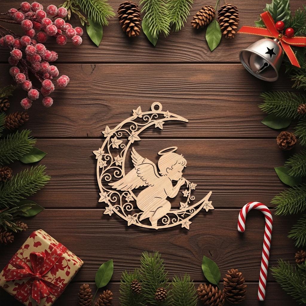 Angel Ornament Laser File, Christmas Moon Angel Celestial Decoration Digital Download
