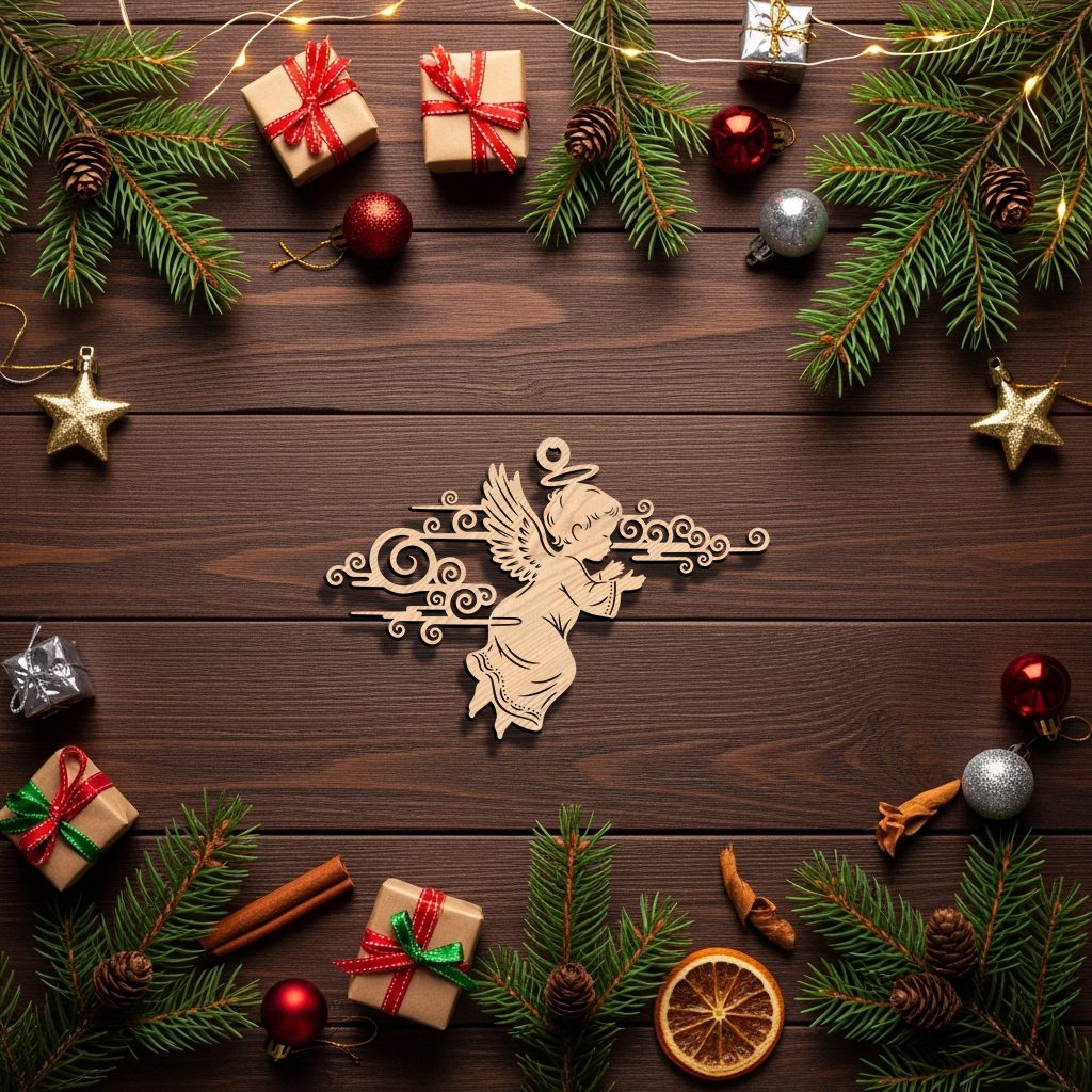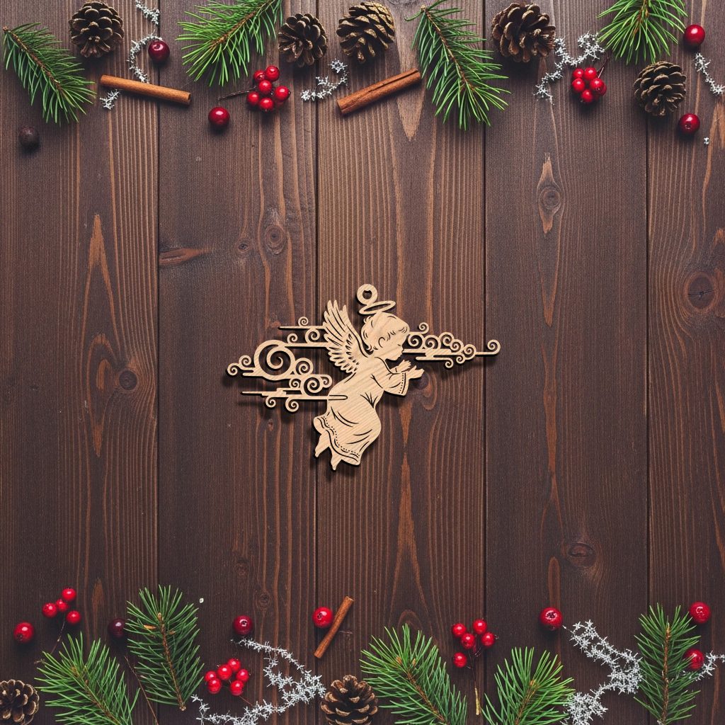 Angel Ornament Laser File, Christmas Silhouette, Memorial Angel in Clouds Design