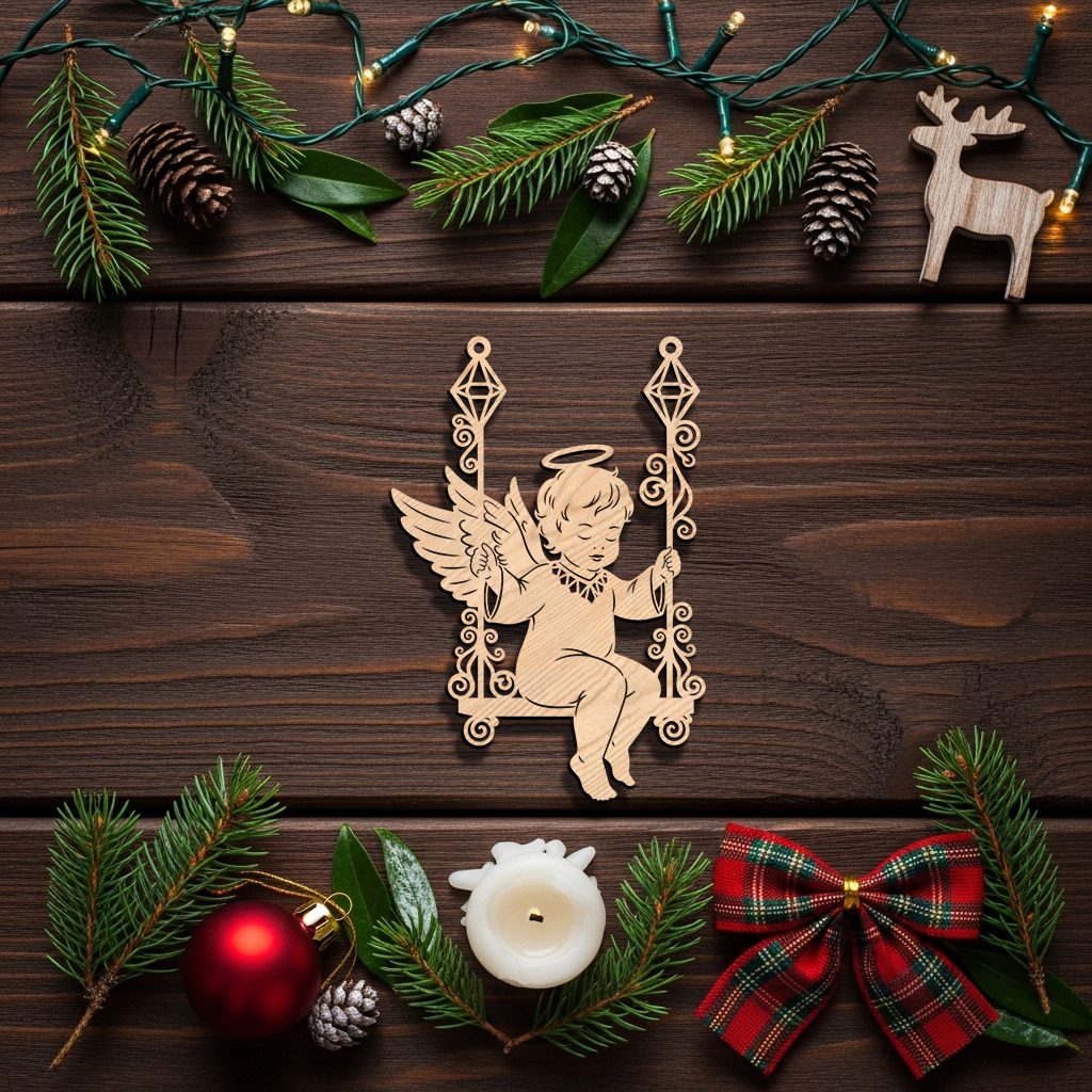 Angel Ornament Laser File, Memorial Angel on Swing Silhouette for Christmas Decor