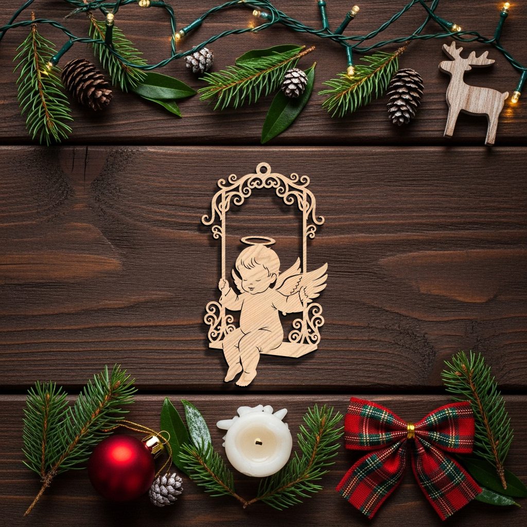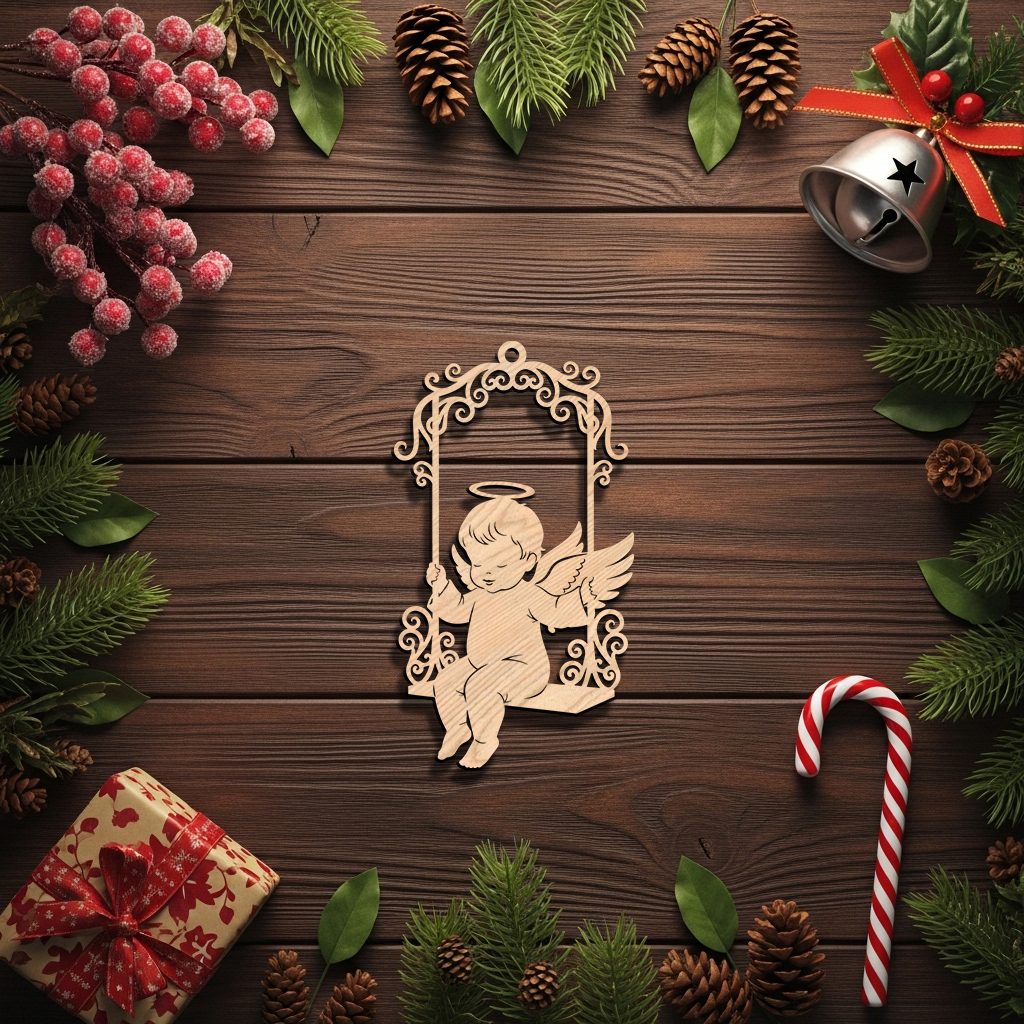 Angel Ornament Laser File, Swinging Angel on Ornate Frame for Christmas Decor