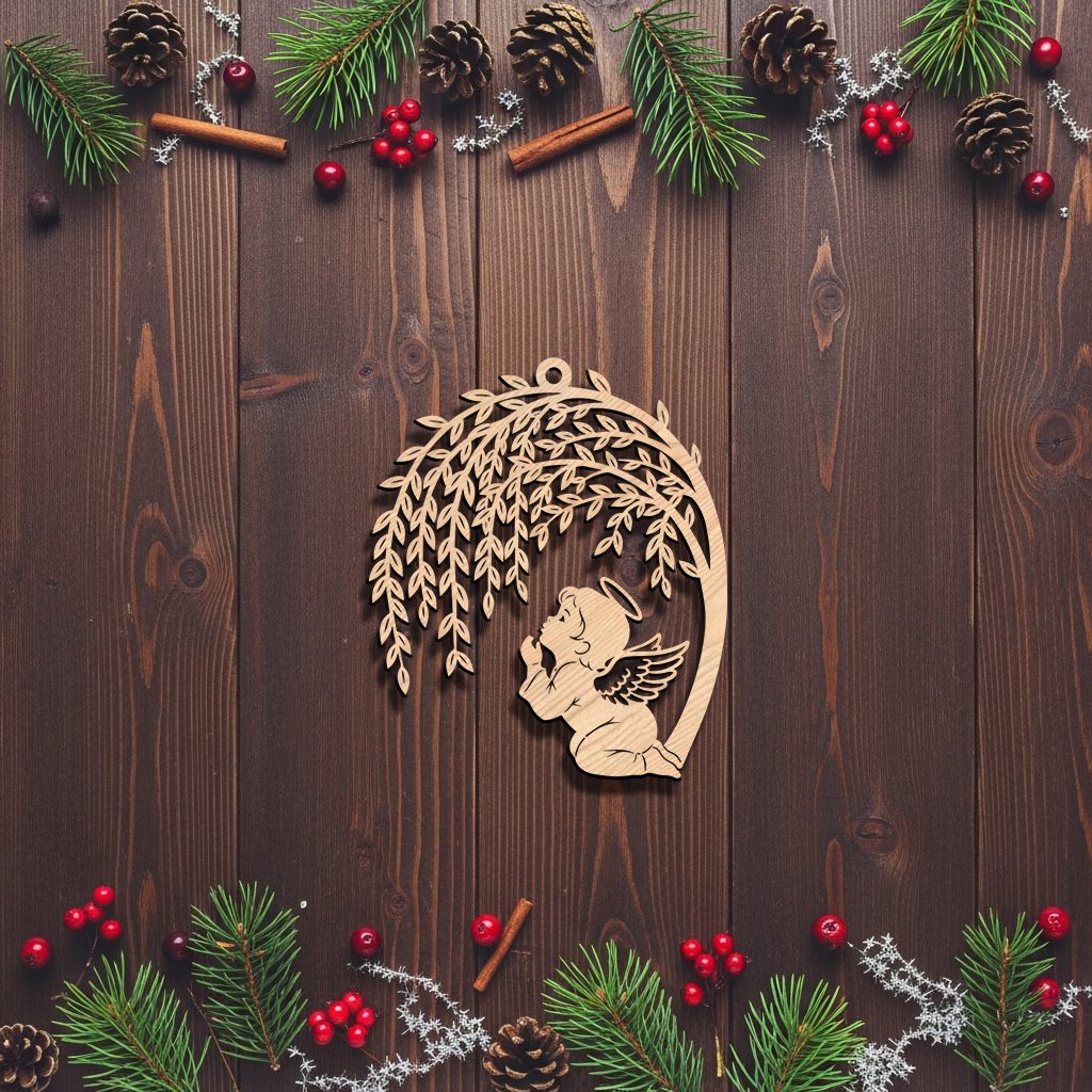 Angel Ornament Weeping Willow Tree Memorial Christmas Decor, Laser Design File