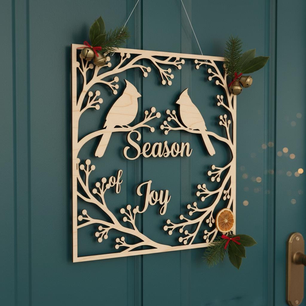 Cardinal Christmas Door Hanger, Season of Joy Front Door Sign, Laser File Decor