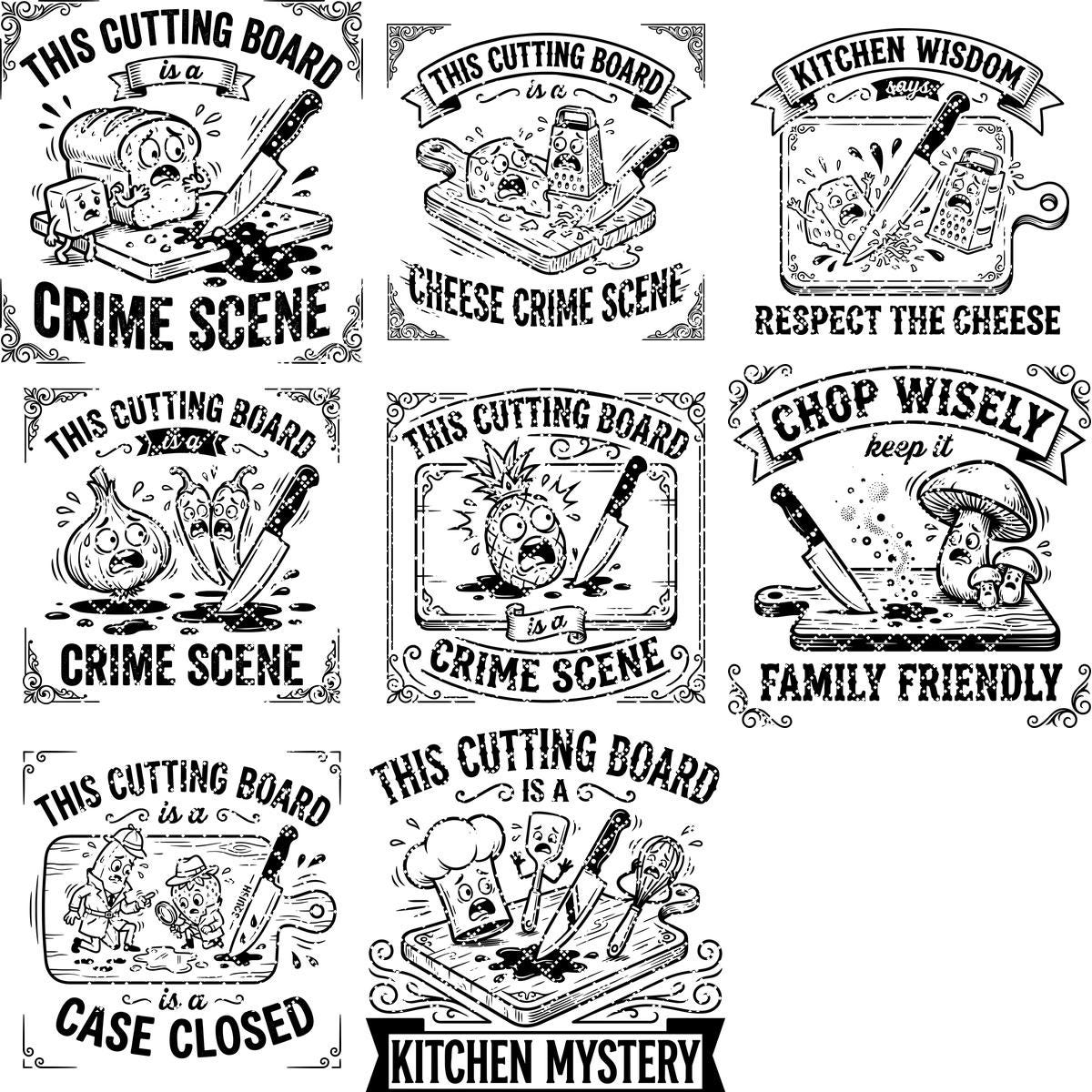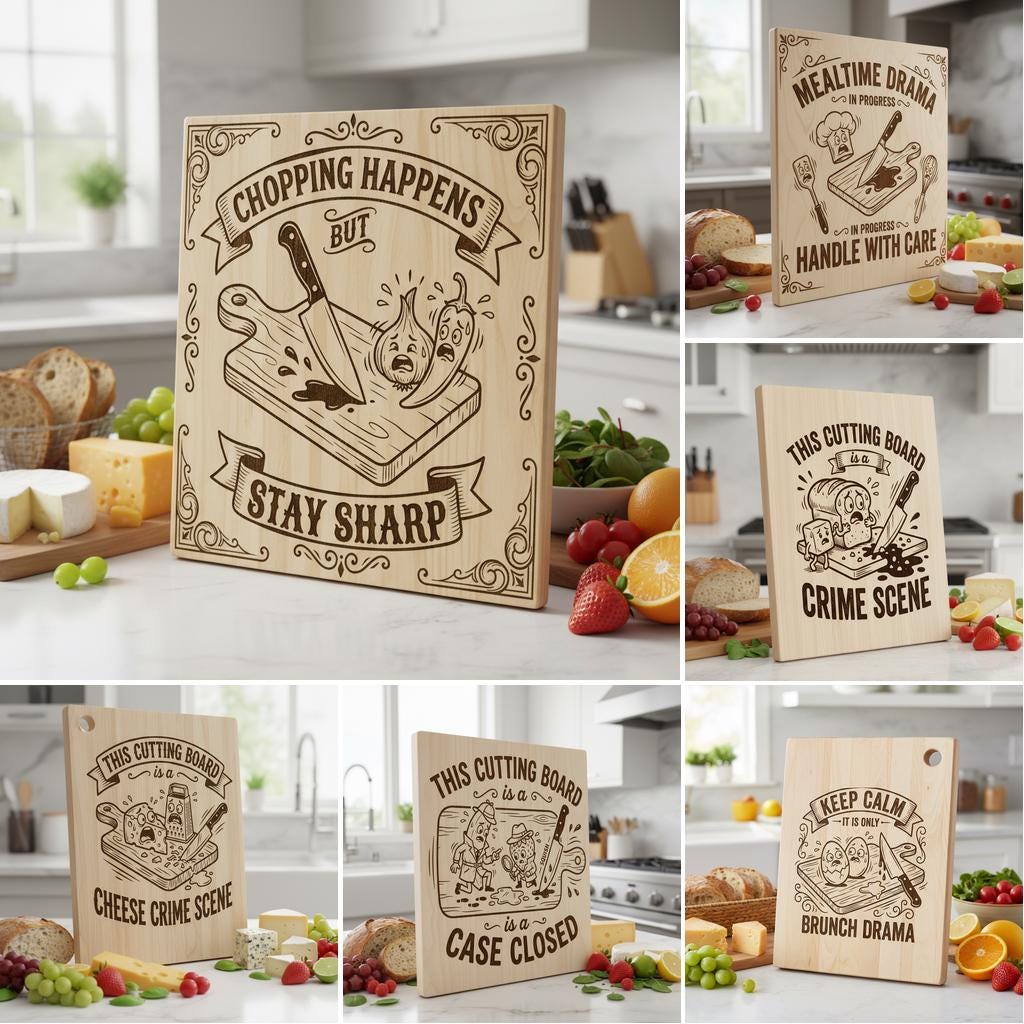 Elevate your kitchen decor with our hilarious bundle featuring 21 unique designs, perfect for charcuterie and chopping boards. These witty engravings spark joy and conversation, turning any meal preparation into a fun experience.