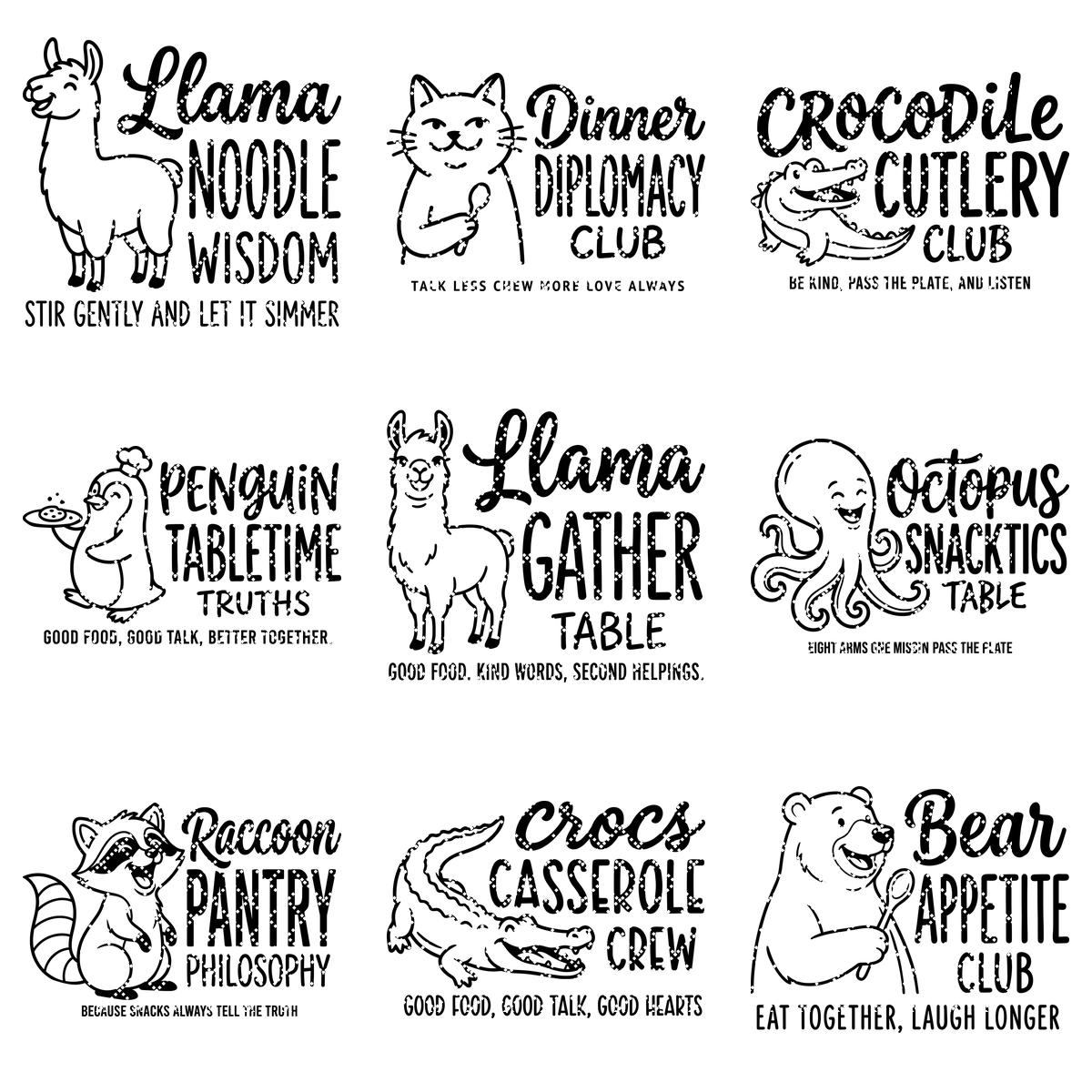 Make your kitchen sparkle with personality and wit through our animal line-art creations combined with funny kitchen sayings. Ideal for gifting or personal use, this kitchen wisdom bundle is sure to make a lasting impression, built to stand out in beauty and style.