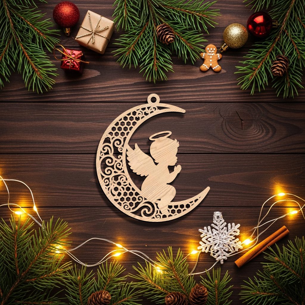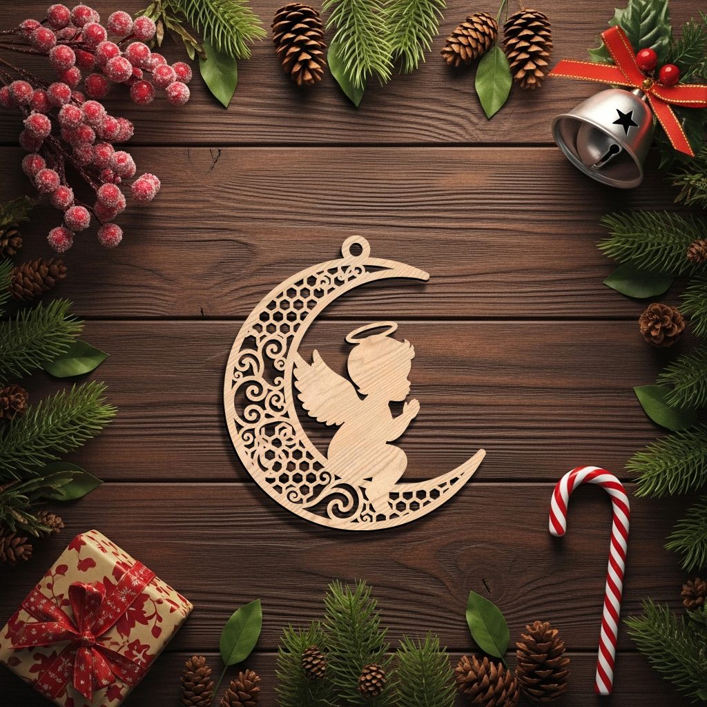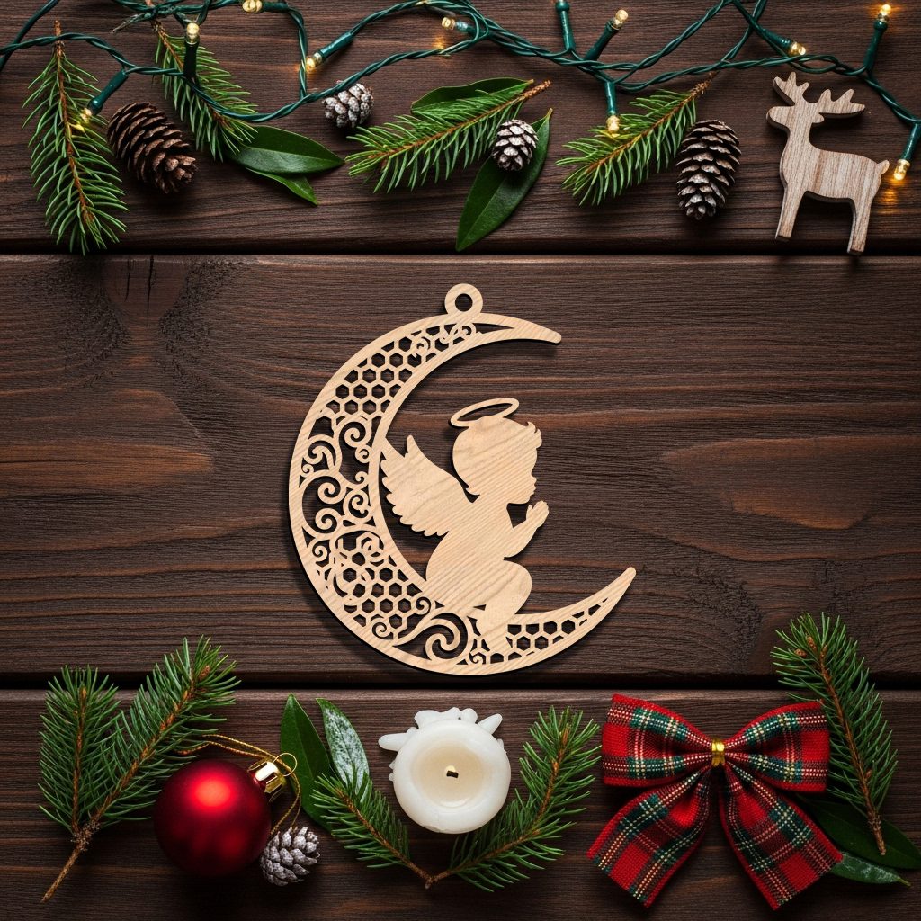 Christmas Angel Moon Ornament Silhouette, Laser File for Cricut, Holiday Decor