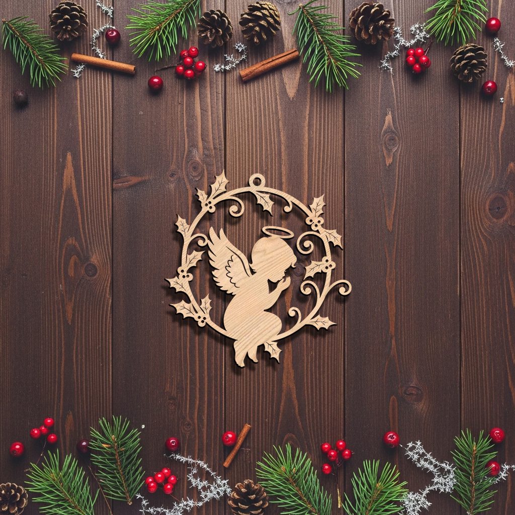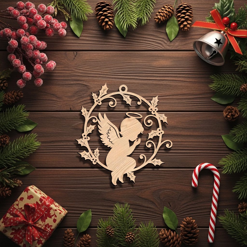 Christmas Angel Ornament Digital File, Holiday Holly Wreath Design for Decorations