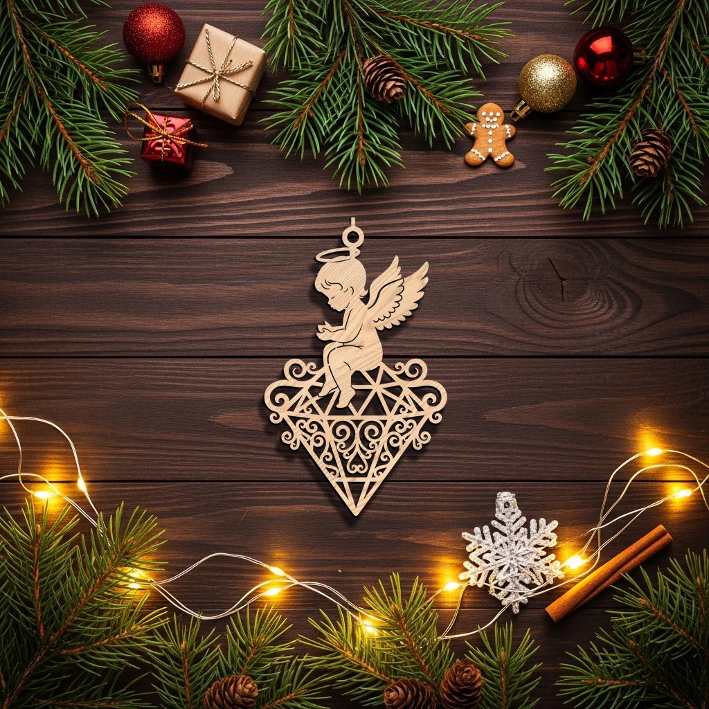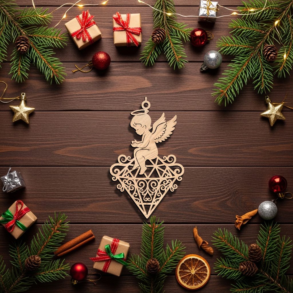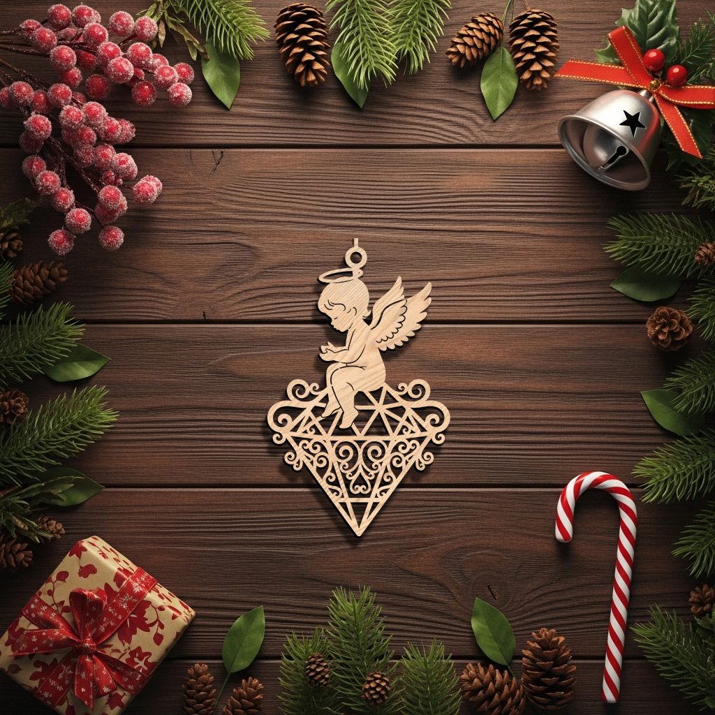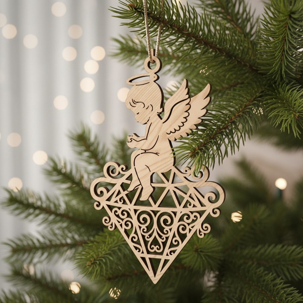 Christmas Angel Ornament, Laser Engraved Silhouette, Digital Download Decor