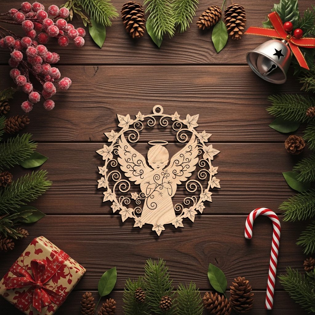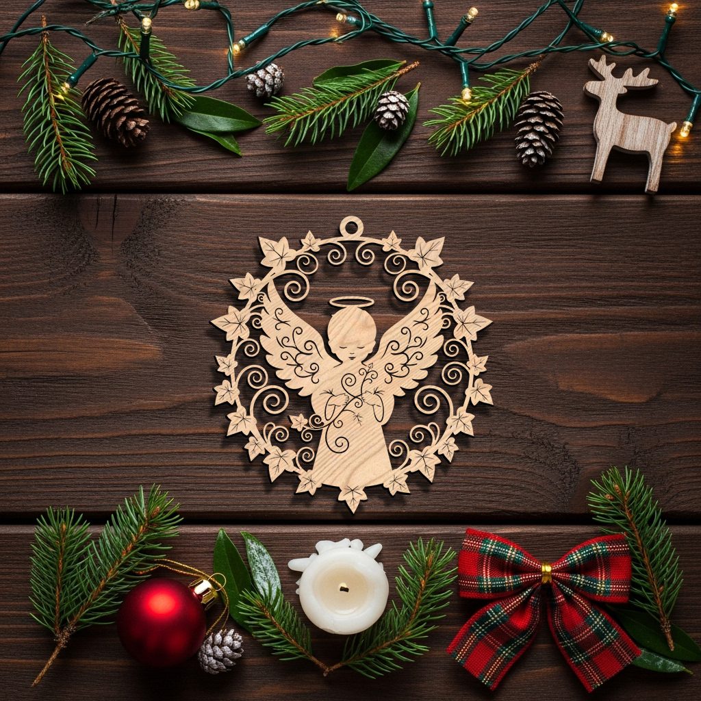Christmas Angel Ornament Laser File, Black Angel Silhouette Wreath for Cricut