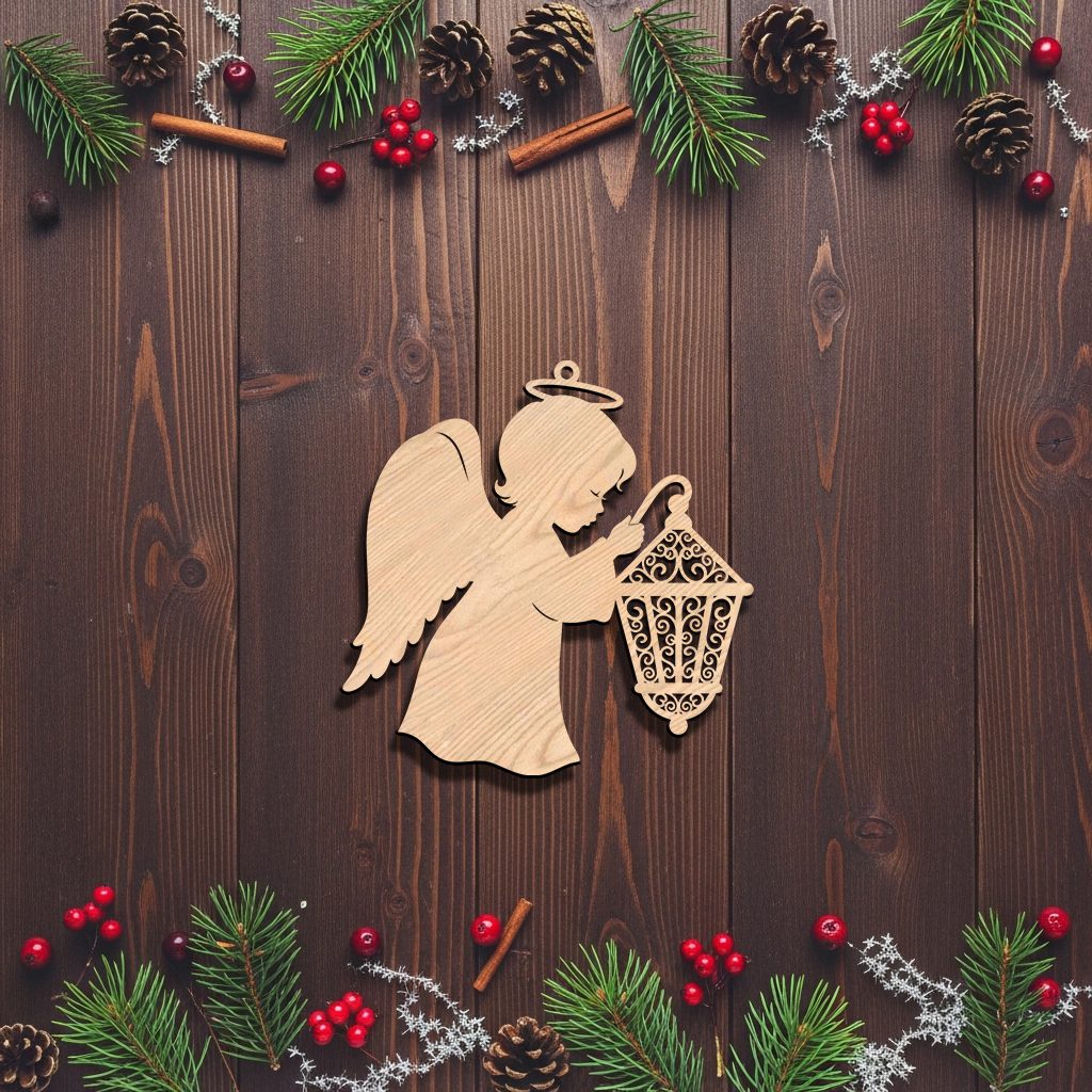 Christmas Angel Ornament Laser File, Holiday Silhouette Design with Lantern