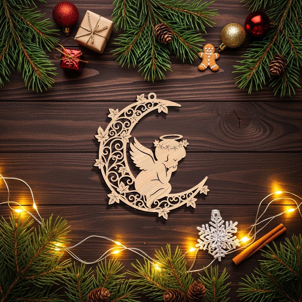 Christmas Angel Ornament Laser File, Moon Design, Cricut Craft Decoration