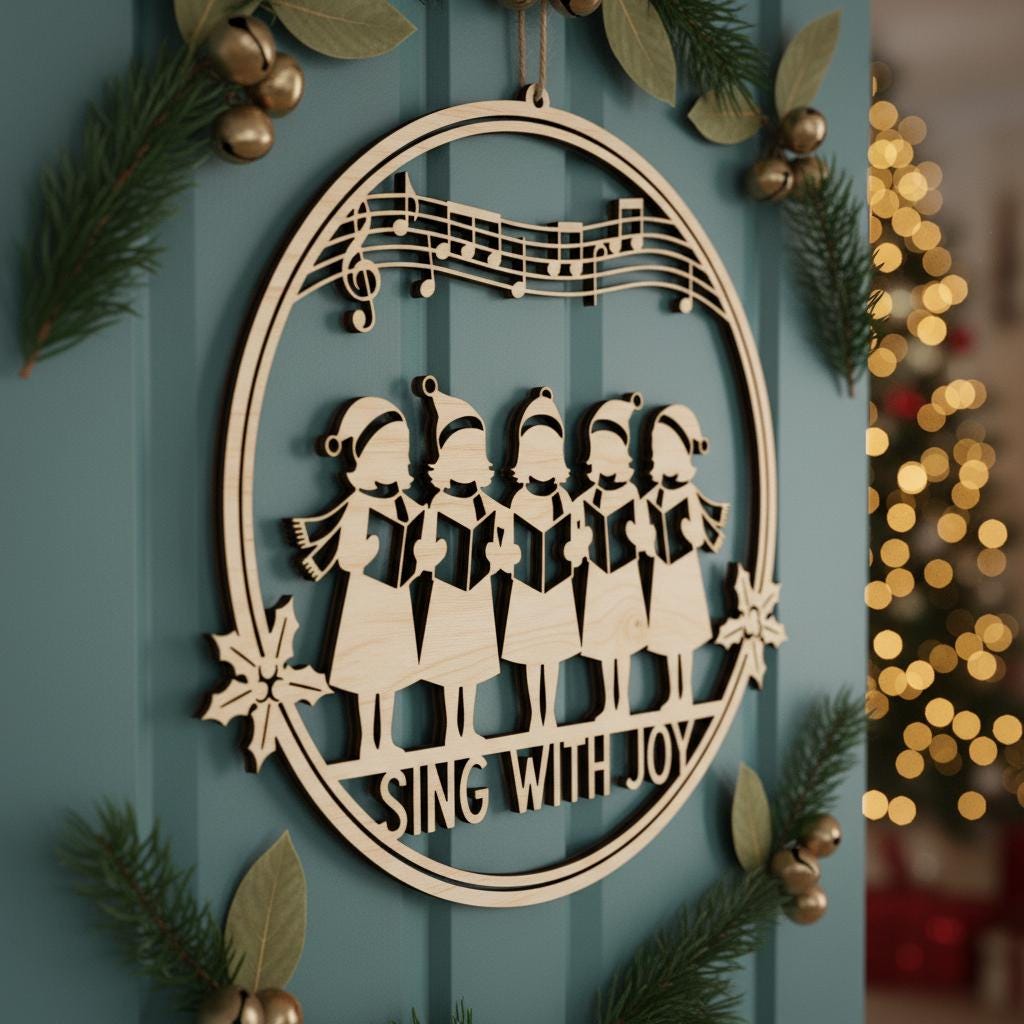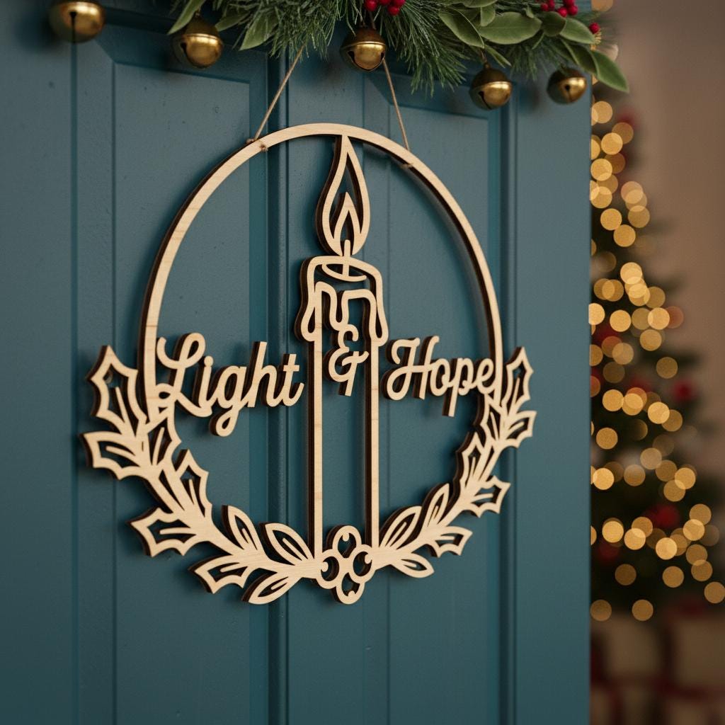 Christmas Door Hanger Bundle, 6 Round Wooden Sign Files for Holiday Decoration
