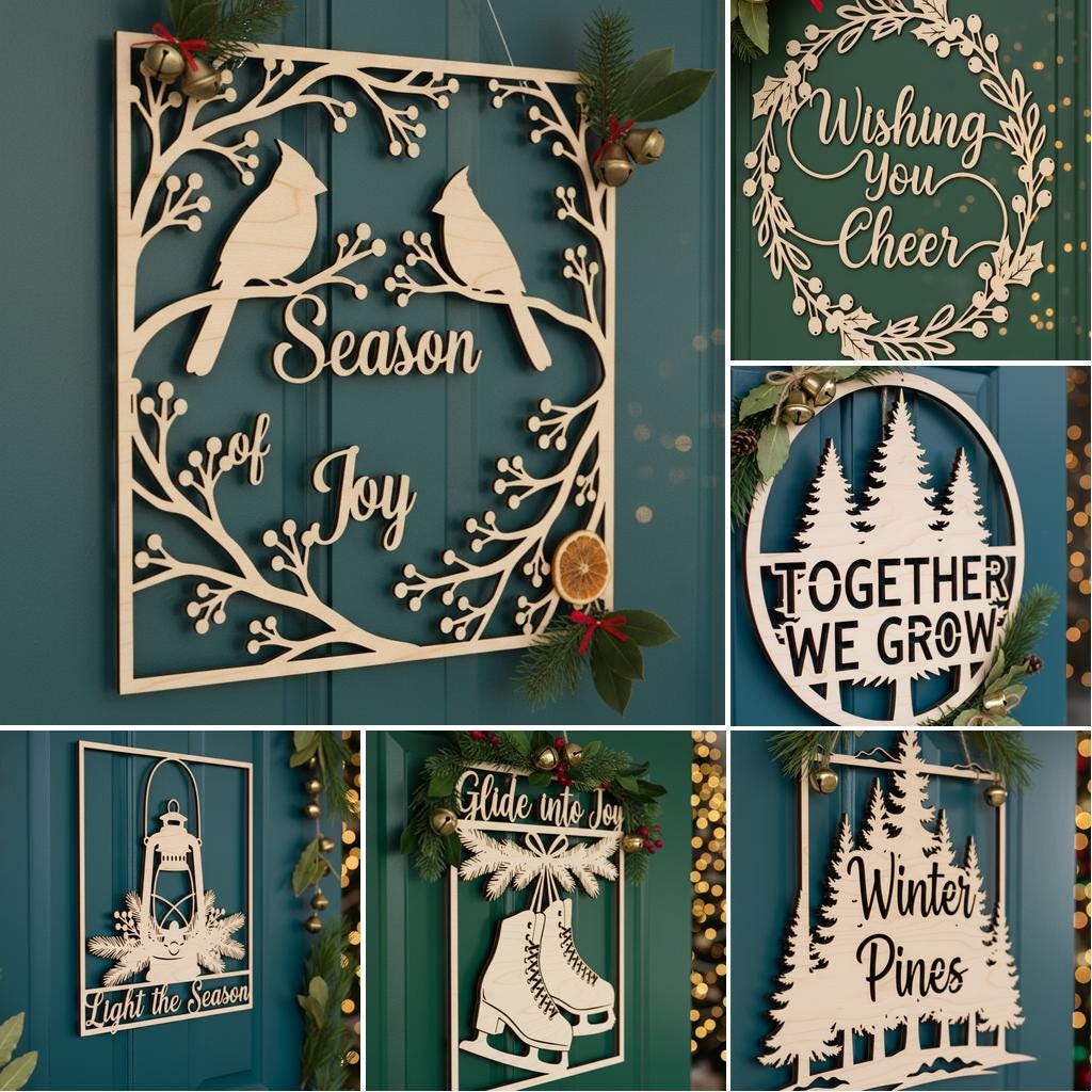 Christmas Door Hanger Bundle, 6 Wooden Sign Files, Festive Round Designs