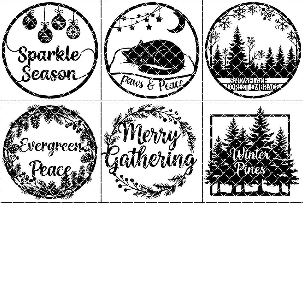 Christmas Door Hanger Bundle, Round Wood Welcome Sign, 6 Festive Holiday Designs