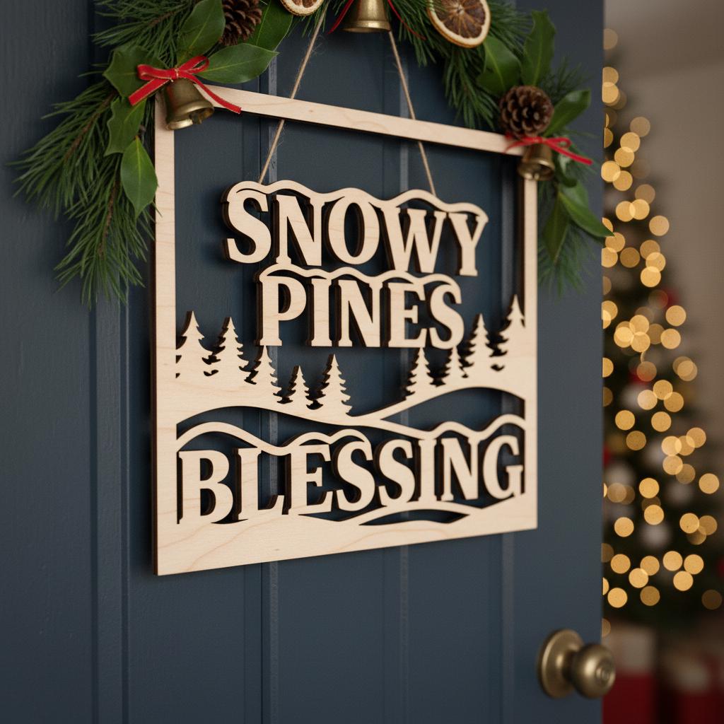 Christmas Door Hanger Digital File, Snowy Pines Blessing, Winter Framed Art Decor
