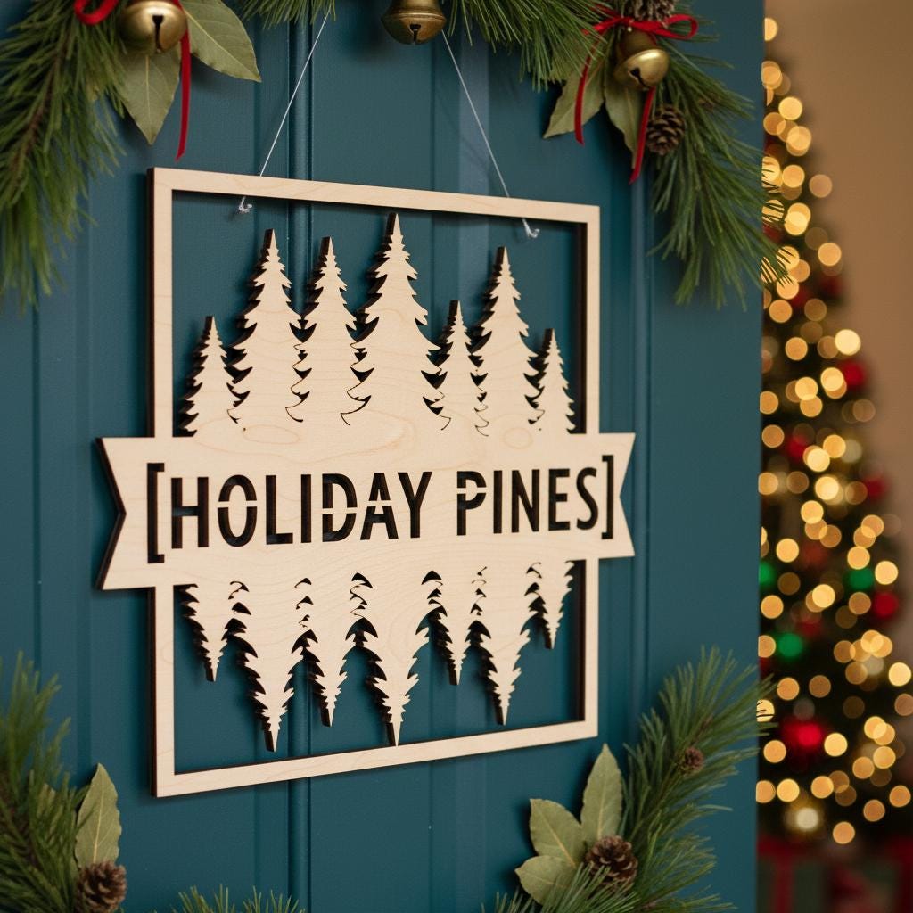 Christmas Door Hanger, Holiday Pines Round Wood Sign, Christmas Trees Decor
