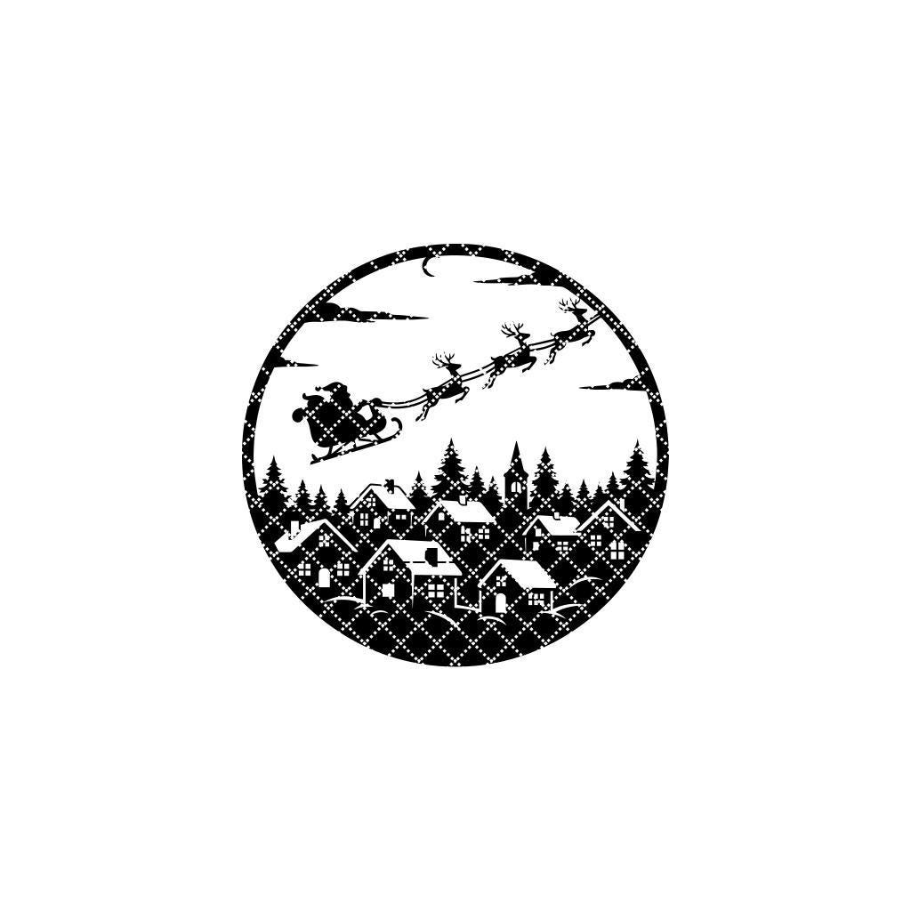 Christmas Door Hanger Santa Sleigh Snowy Village Round Holiday Sign Decor