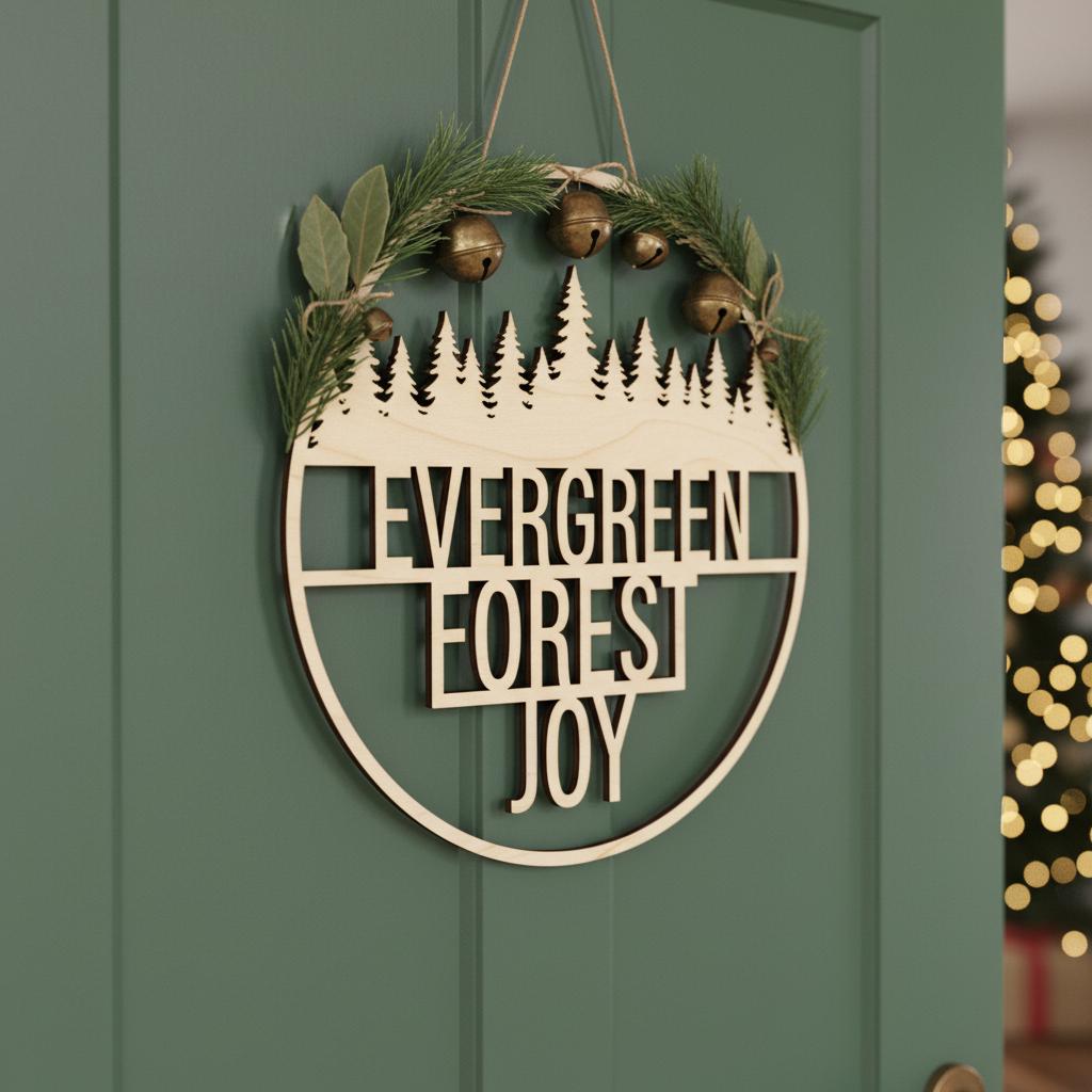 Christmas Round Door Hanger Tree Sign, Welcome Decor, Laser Ready Digital File