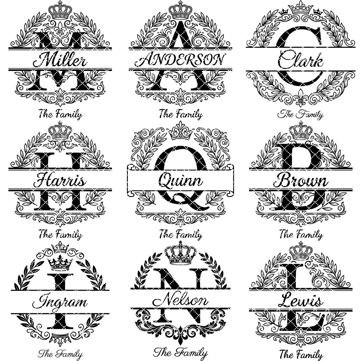 Each refined letter features intricate flourishes optimized for laser engravers, including Lightburn and Glowforge workflows. Personalize any surname with ease by pairing the decorative initial and family name, delivering a high-end, bespoke look clients adore while saving you hours of design time.
