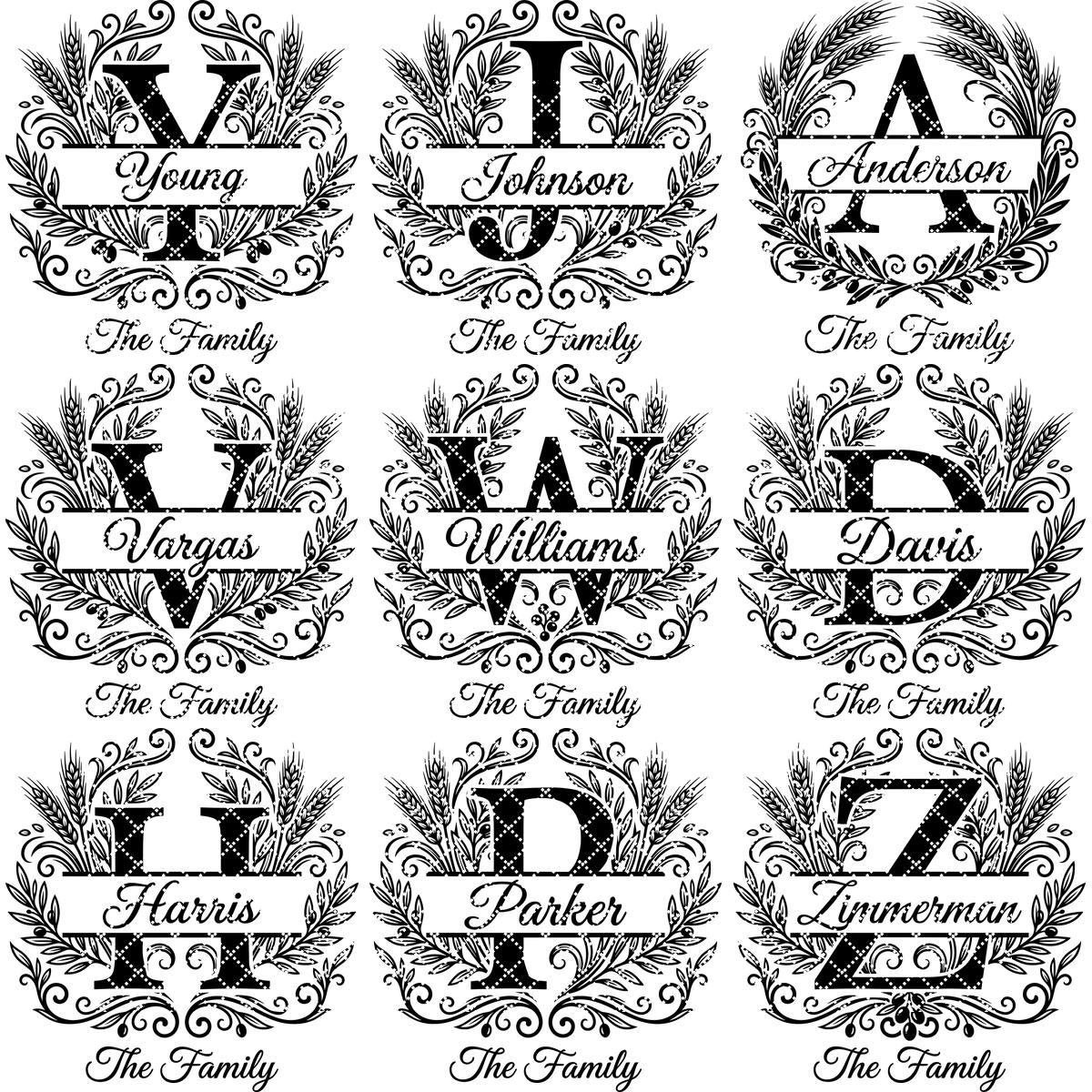 **NOTE:**This set contains all 26 alphabet letters, as displayed in the product photos. Fonts are not included. Feel free to delete the existing surnames and personalize the design with your own fonts.
