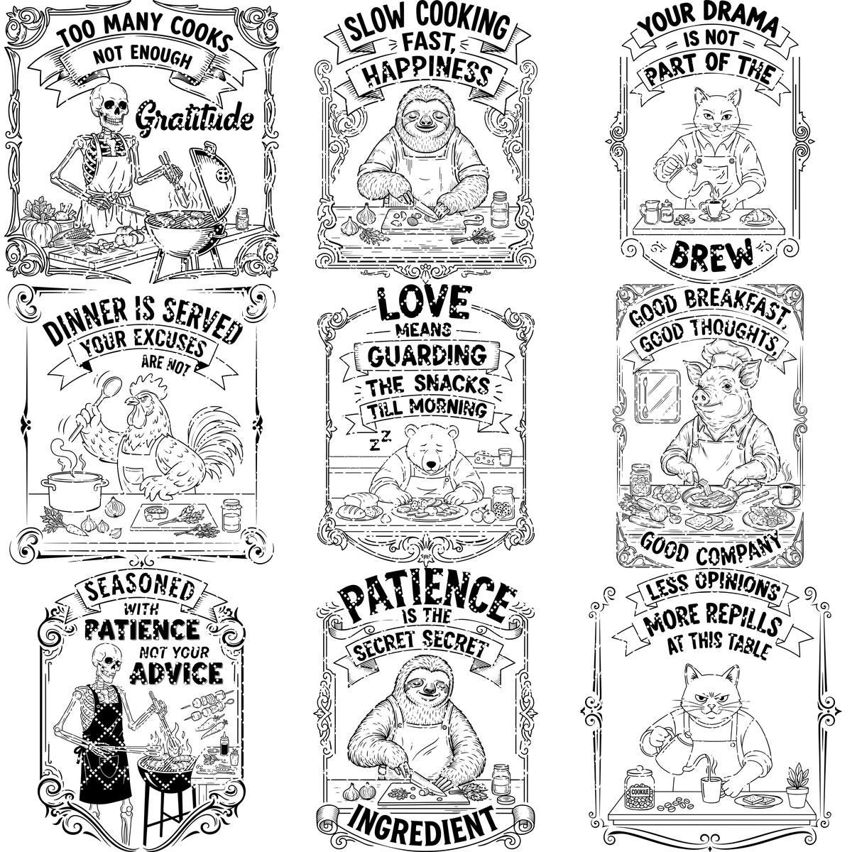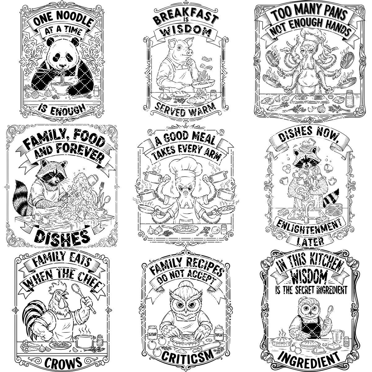 Add a splash of humor and charm to your kitchen creations with this delightful bundle featuring quirky animal noodle designs. Perfect for adding a vintage touch, these files bring personality and fun to your boards, making every meal prep a smile-worthy experience.
