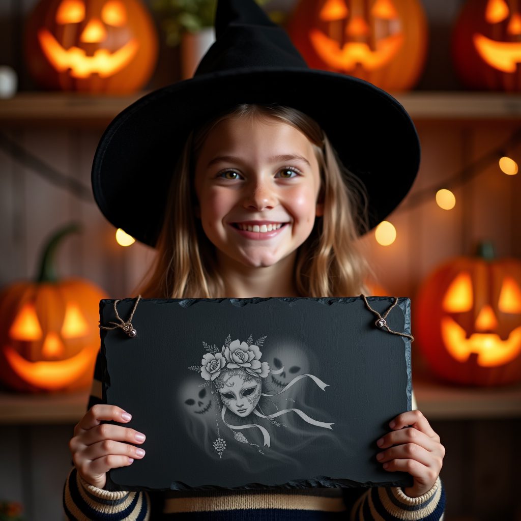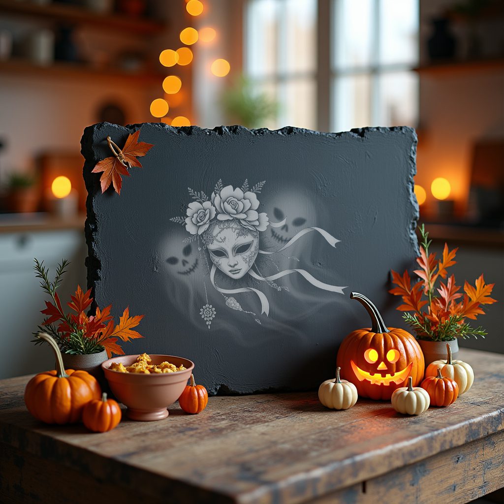 Elevate your spooky season gatherings with our Ghostly Haunted Halloween Cheese Board, featuring a captivating masquerade engraving. Designed to impress, this unique kitchen accent becomes the centerpiece of any Halloween party or autumn get-together.