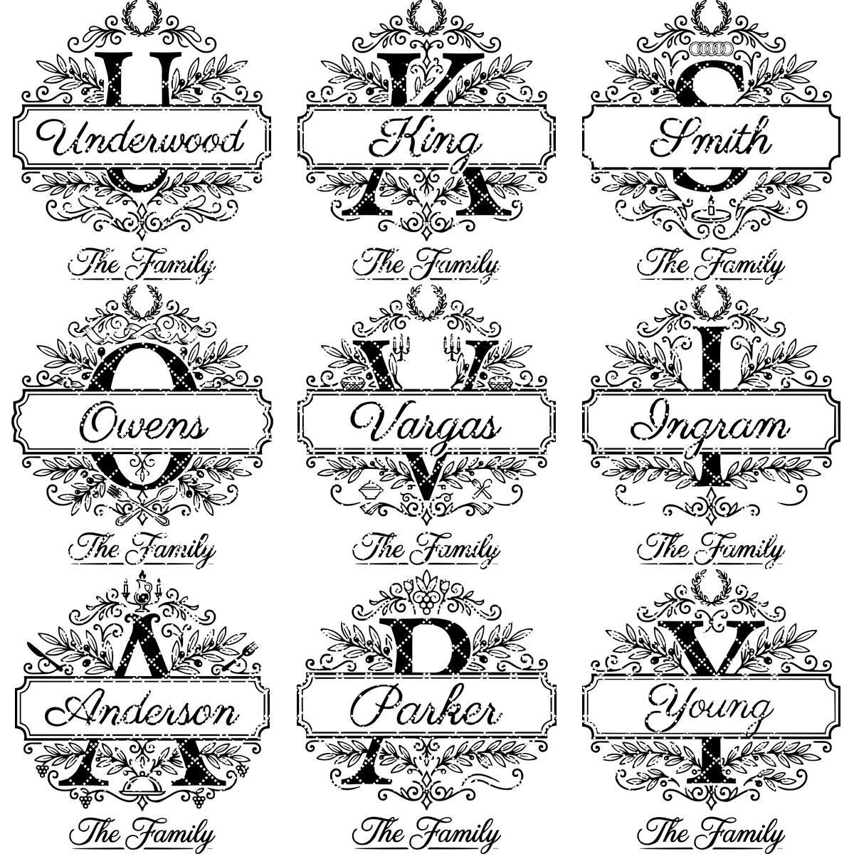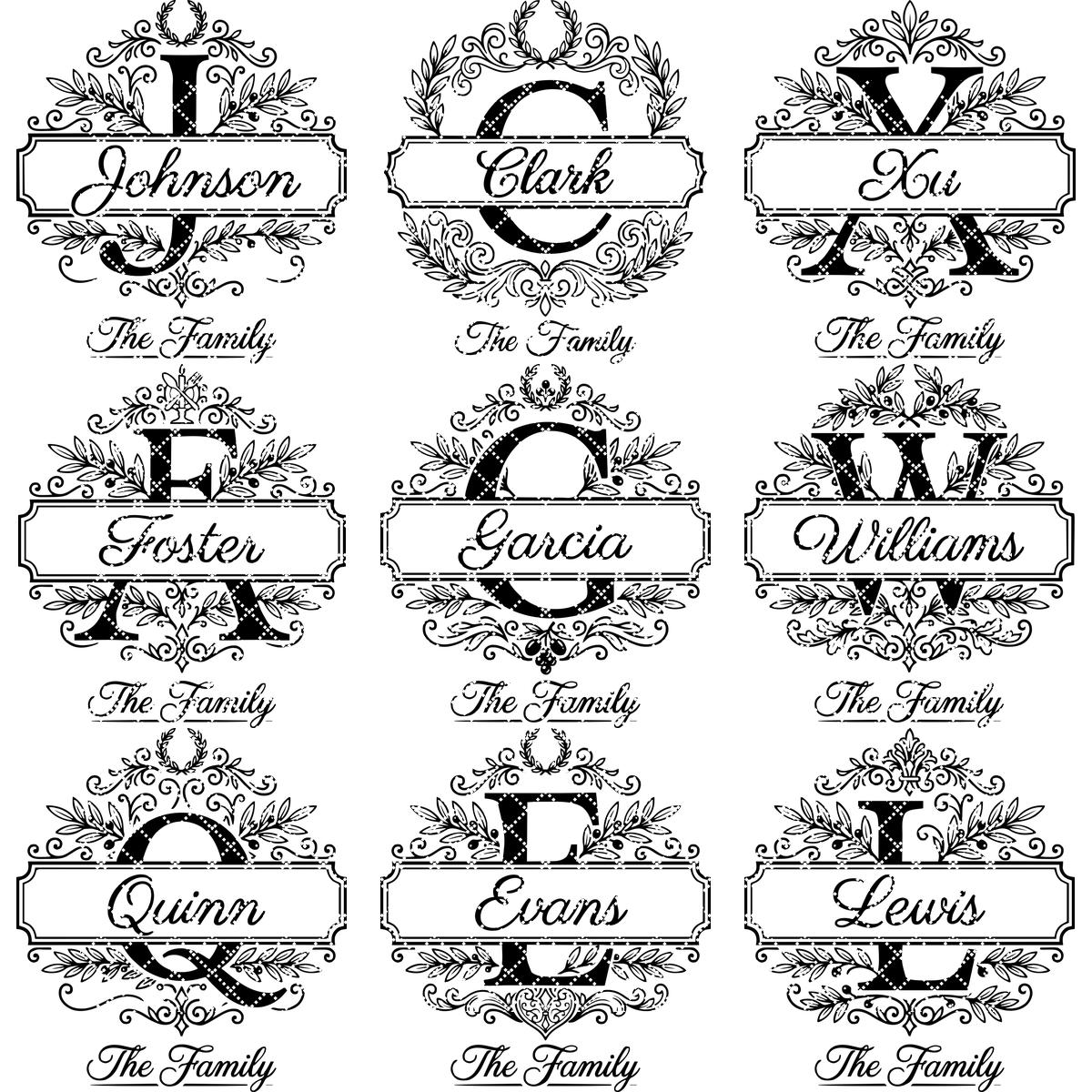 **NOTE:**This set contains all 26 alphabet letters, as displayed in the product photos. Fonts are not included. Feel free to delete the existing surnames and personalize the design with your own fonts.