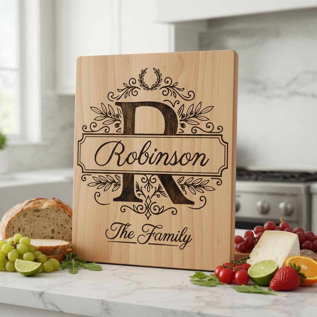 Elevate your kitchen décor and gift-giving with our Monogram Board Design Collection. Each graceful letter is framed by timeless olive leaves, creating an heirloom-quality look for wooden boards, serving trays, and more—perfect for weddings, anniversaries, and housewarmings.