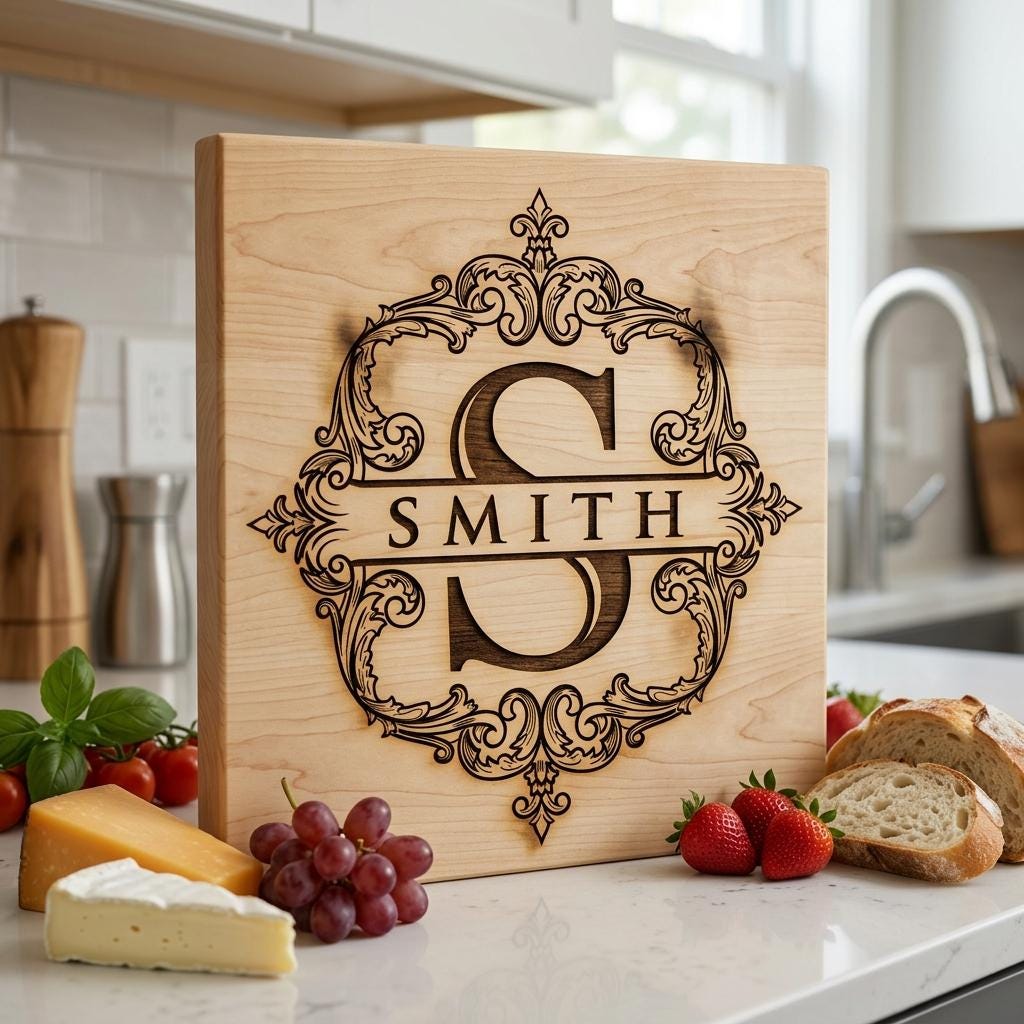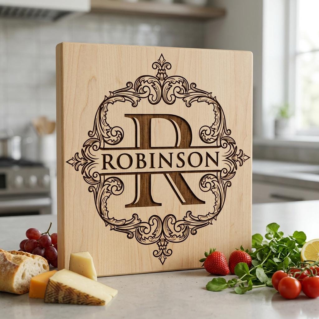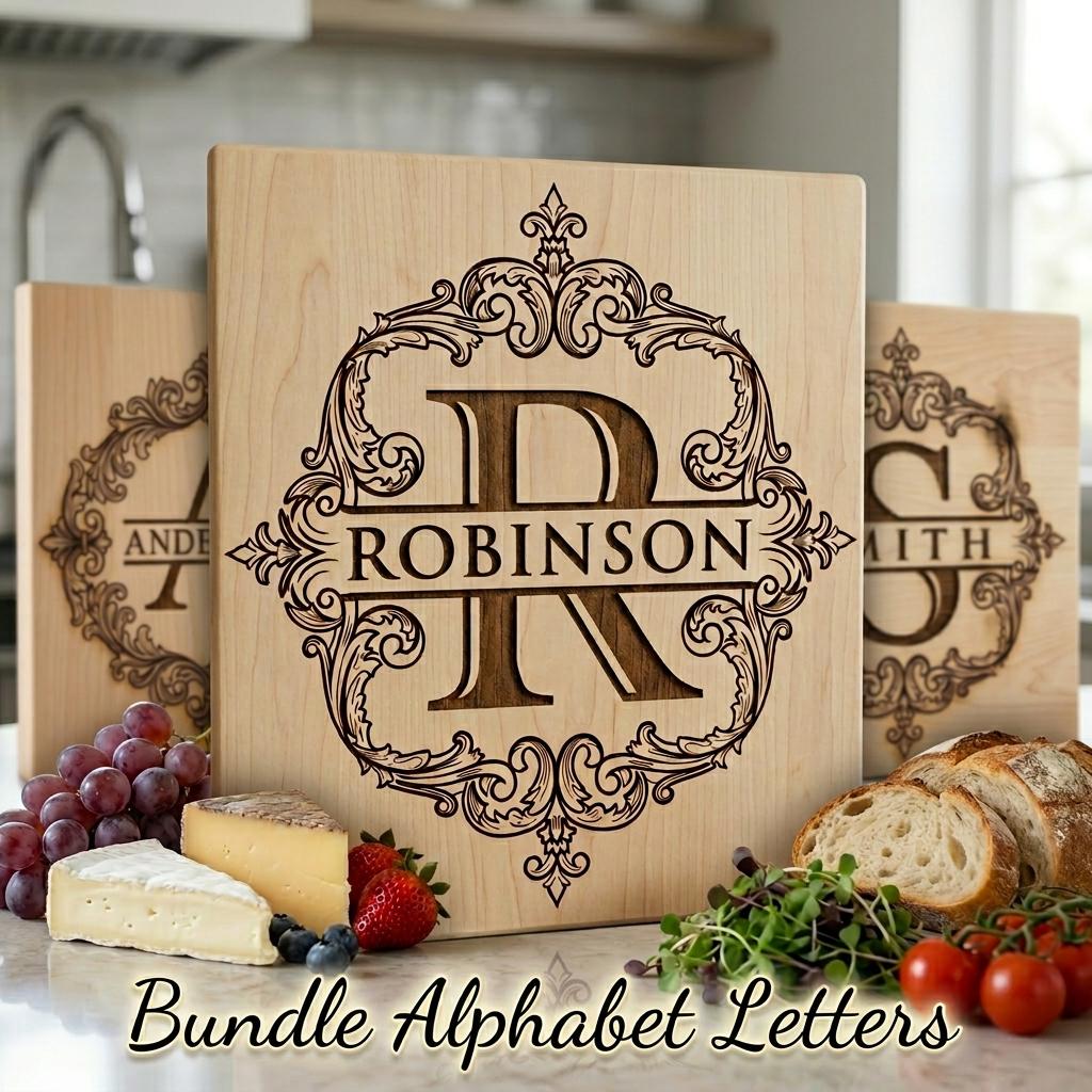 Enjoy a complete alphabet of meticulously crafted crest designs, ideal for engraving on chopping boards, serving trays, plaques, and more. These high-quality digital files are tailored for precise results on popular laser systems, giving your creations a professional, upscale finish.