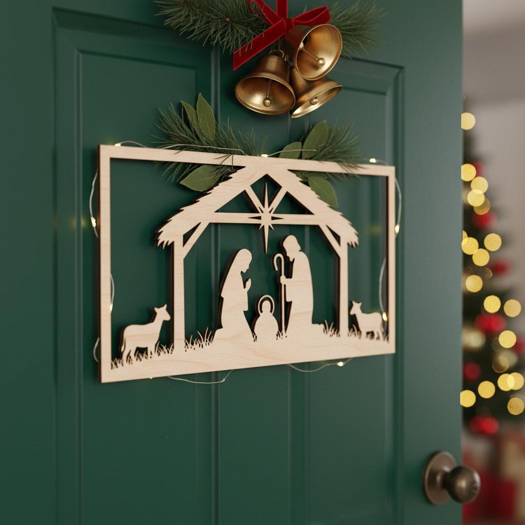 Nativity Door Hanger Digital File, Christian Christmas Sign, Manger Silhouette Scene