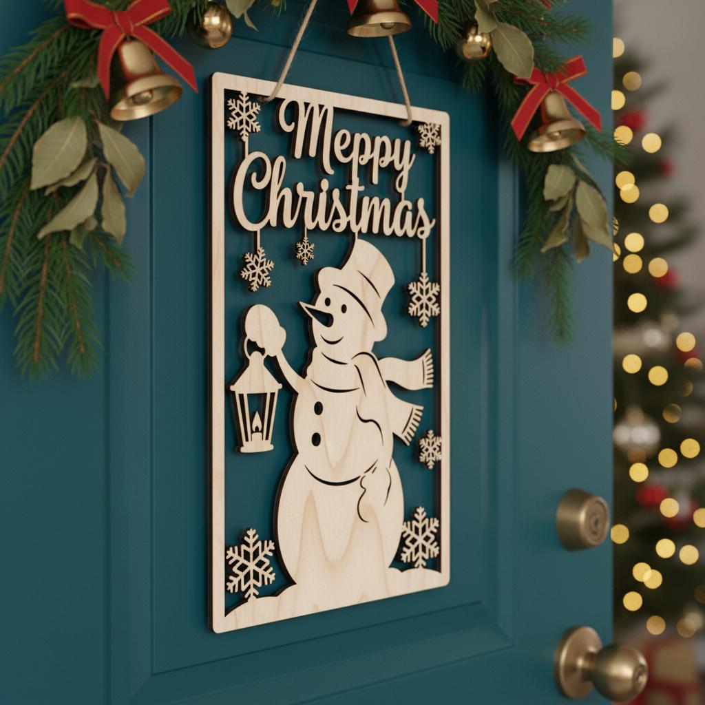 Snowman Christmas Door Hanger, Merry Christmas Sign Cricut, Laser File Download